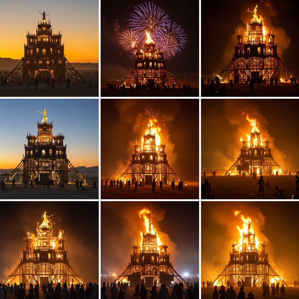 The event takes its name from the ritual burning of a large wooden effigy, re-imagined every year but always known as, “The Man”.