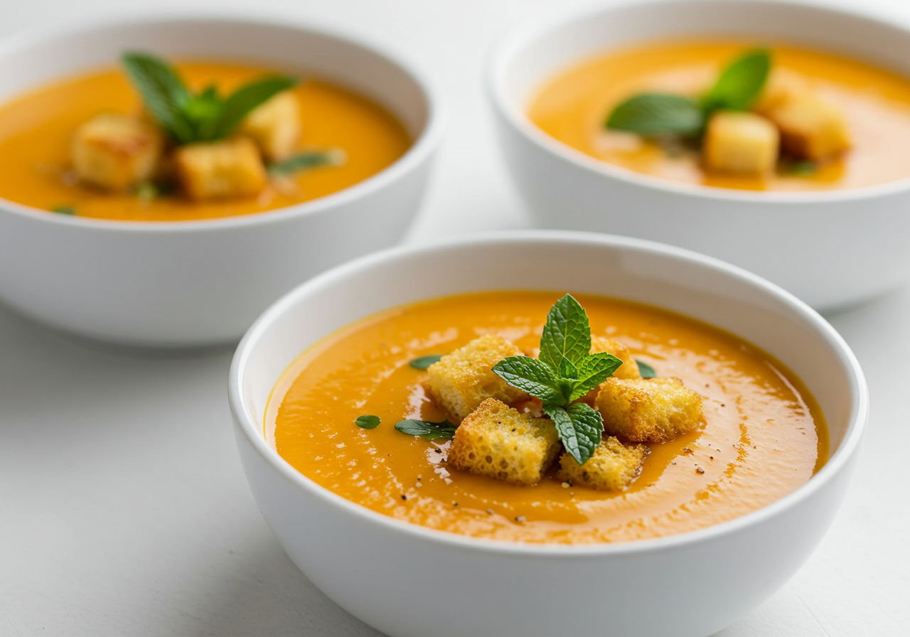 We went to the farmers market this morning and were so inspired by the fresh and beautiful carrots and ginger to create this soup. Serve in a smaller portion as a first course, or in a larger entree portion.