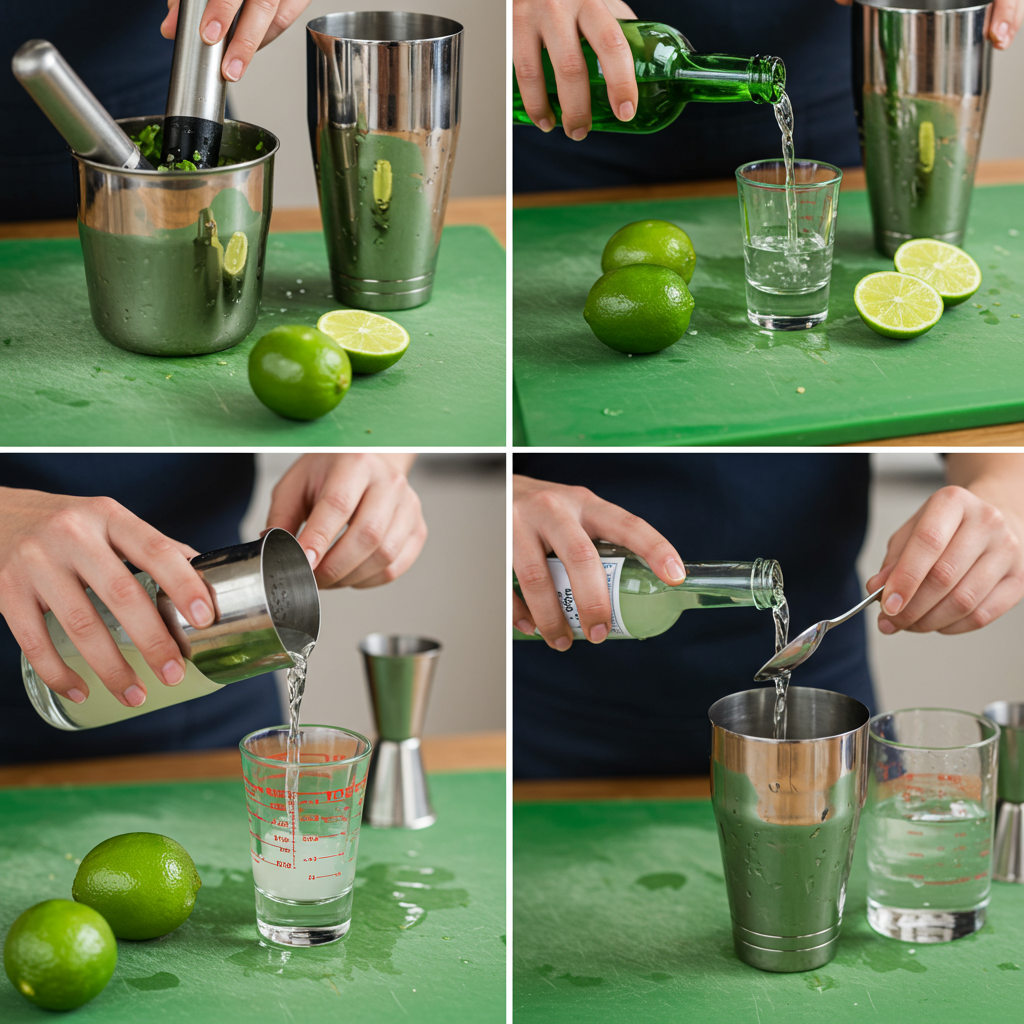 - Using a cocktail shaker and muddler, muddle the mint sprigs and celery. Add 2 oz of gin and 1 oz of lime fresh juice and the diluted honey.