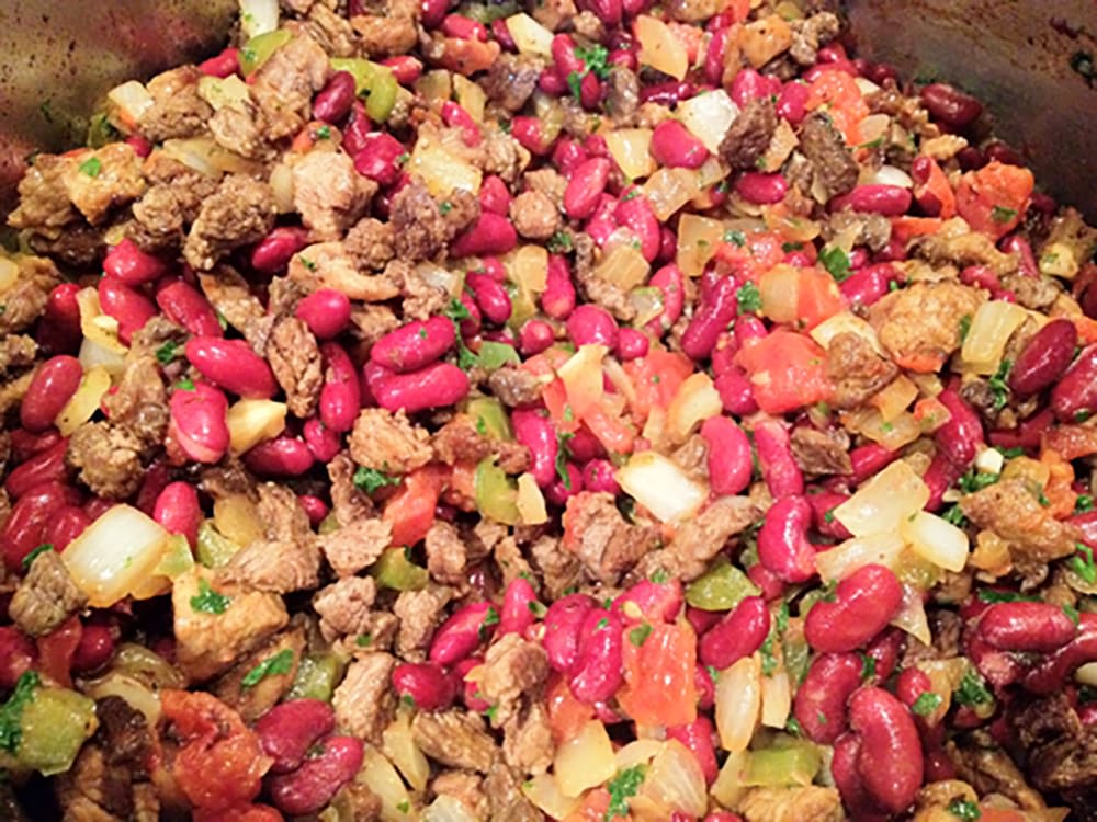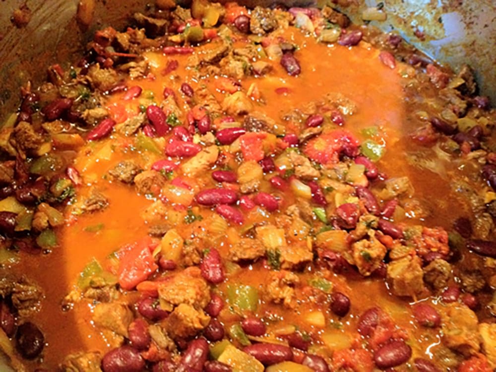 Bring mixture to a boil. Reduce heat. Simmer, covered, for one hour. Uncover and cook 30 minutes more or to desired consistency. Chili shouldn’t be too thick – if need be add some water. It should be somewhat liquid but not runny like soup. Skim of excess fat and serve.