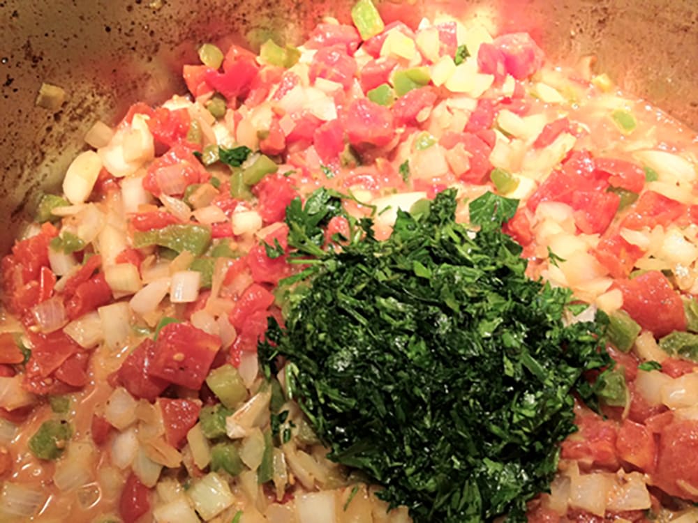 Using a large deep skillet or pot, melt the butter and sauté the beef chuck and pork shoulder until browned, remove from pot and set aside. (beef and pork may be sautéed together or separately).