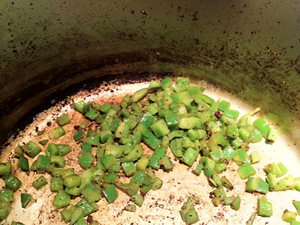 Using the same pan, add oil and sauté the bell pepper for five minutes.
