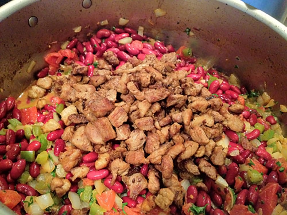The original recipe calls for dry beans, because we made this dish in Aspen (high altitude) making it difficult to cook dry beans well, we used canned and think they are just as delicious, and require far less prep. (We highly recommend “SW” brand as they are firm).