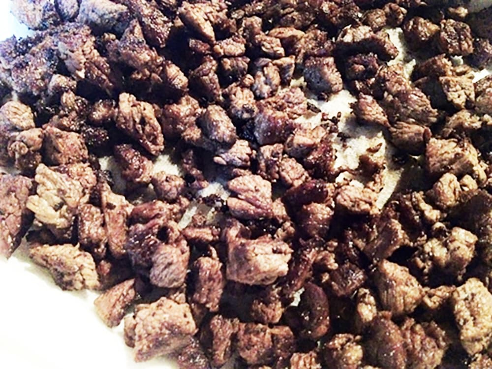 Chasen’s used the best beef chuck, center cut, trimmed completely of fat. Meat should be chopped into one-quarter to one-half-inch chunks.