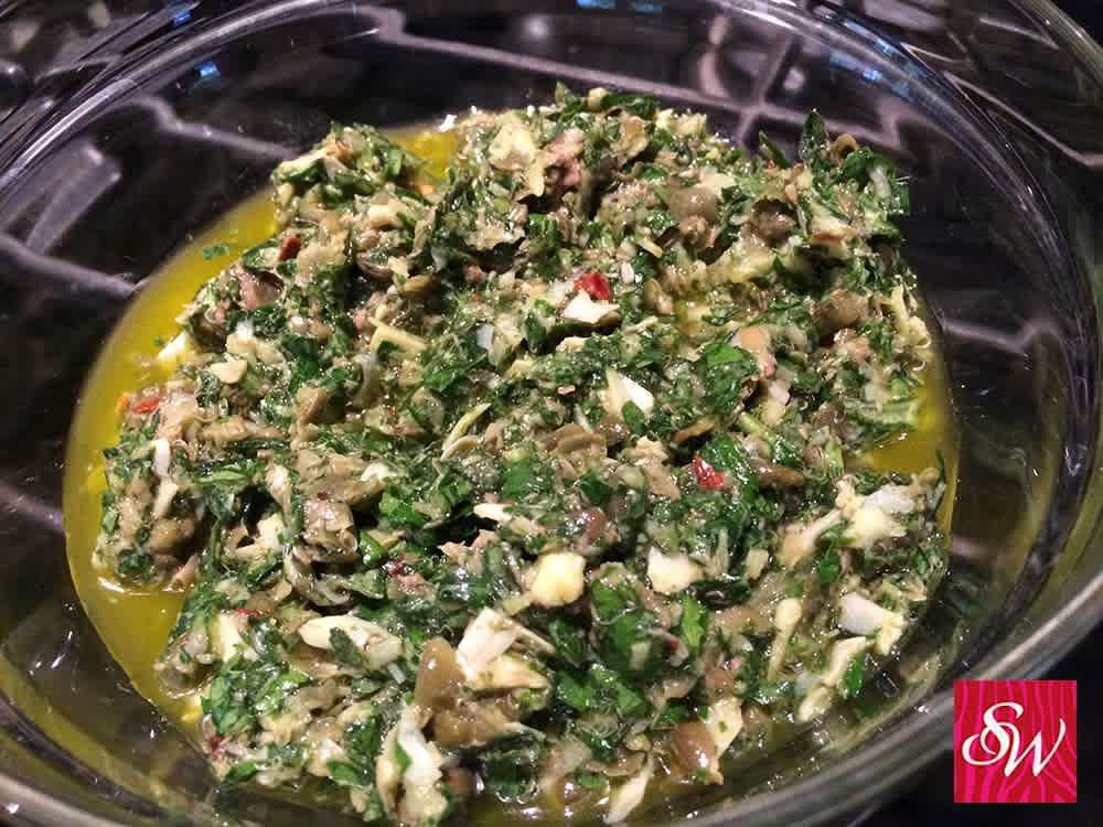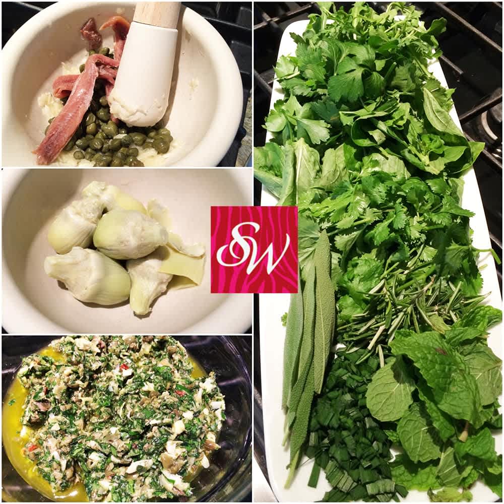 Every culture has a version of Salsa Verde (green sauce). It’s consistently and uniquely delicious and varies as much by ingredient as ethnicity. I have to admit, I love them all but, Jonathan Waxman’s version of, Salsa Verde from his new cookbook, Italian My Way is one of my favorites. We made a few adjustments, including the addition of artichoke hearts to add another dimension.
