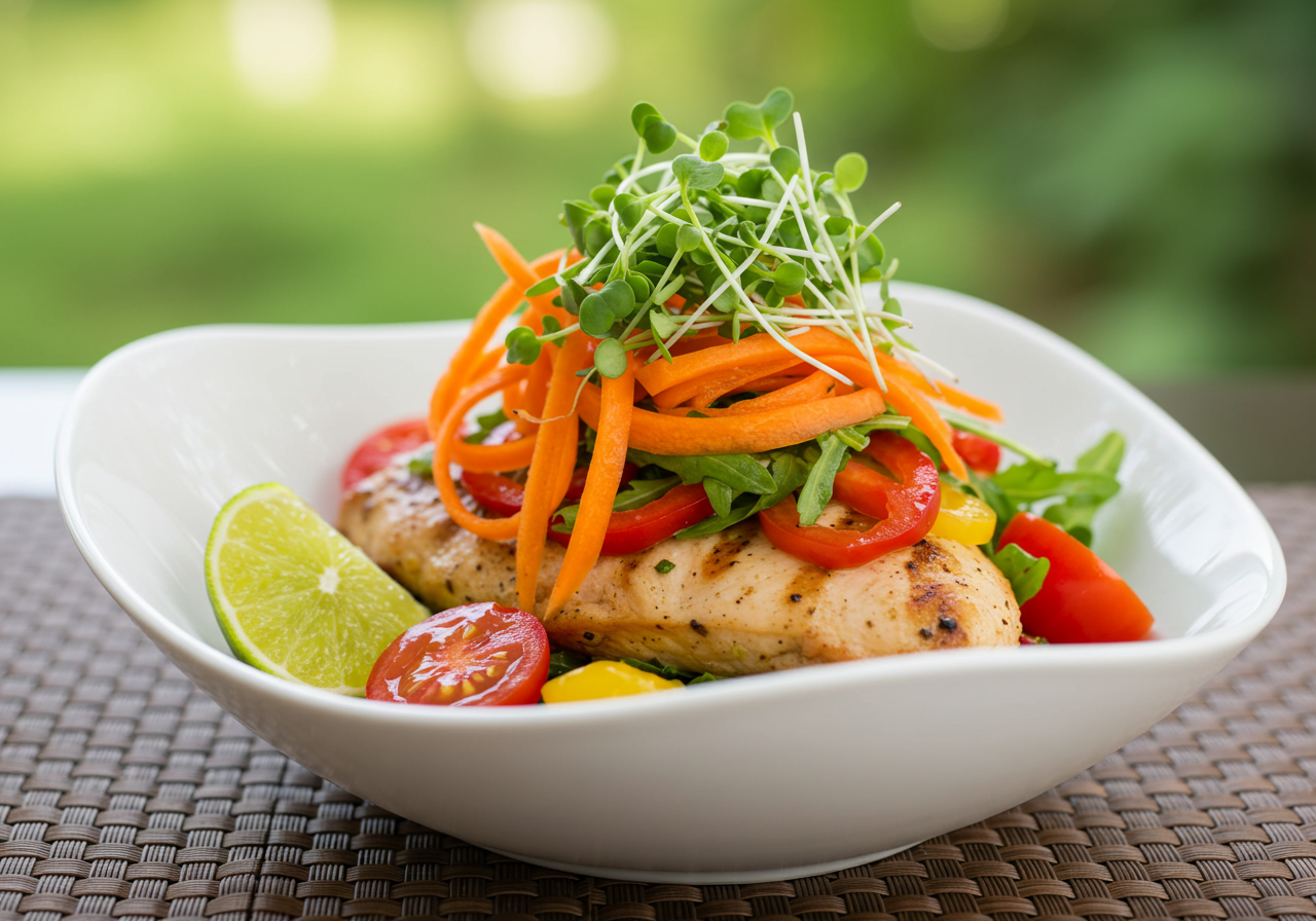 - Finish with broccoli sprouts, cilantro leaves, salt and pepper to taste.