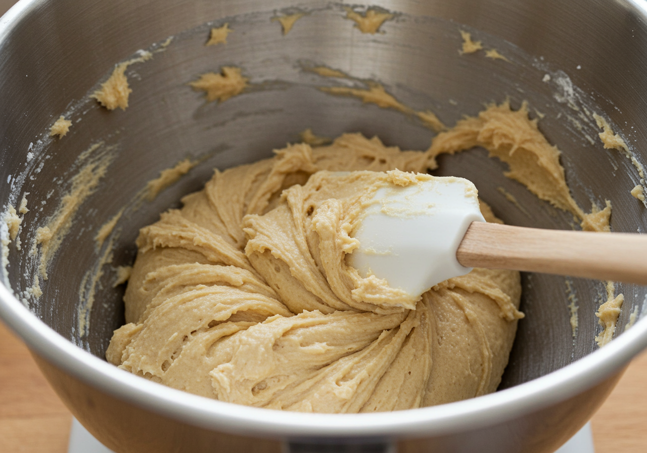 - Sift together the flour, baking powder, and salt. Mix the dry ingredients into the batter with the mixer on low speed until just combined.