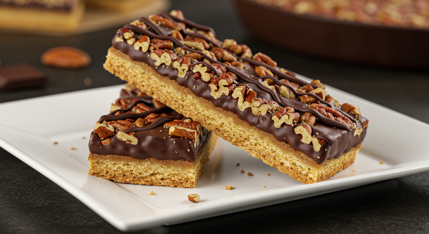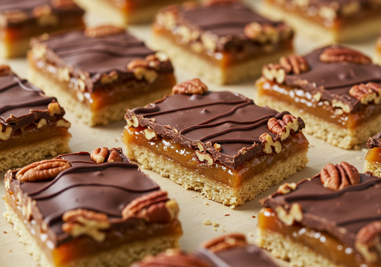 - Dip just the end of each bar in the chocolate and lay on parchment lined cookie sheet. When all bars have been dipped, return to the fridge allowing the chocolate to set. ENJOY!