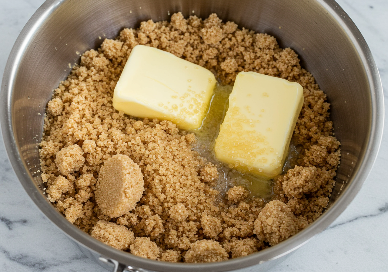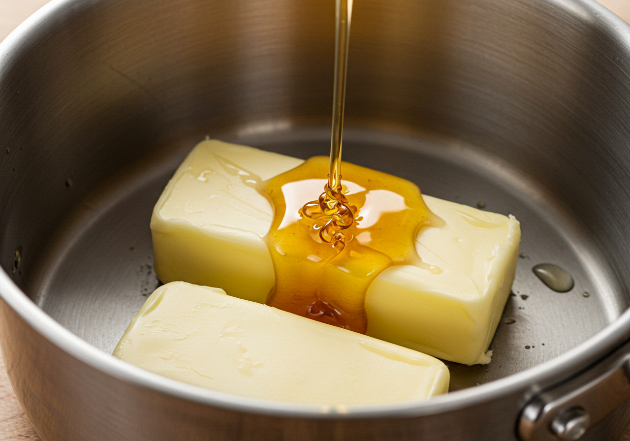 - Combine the butter, honey, brown sugar, and zests in a large, heavy-bottomed saucepan. Cook over low heat until the butter is melted, using a wooden spoon to stir.