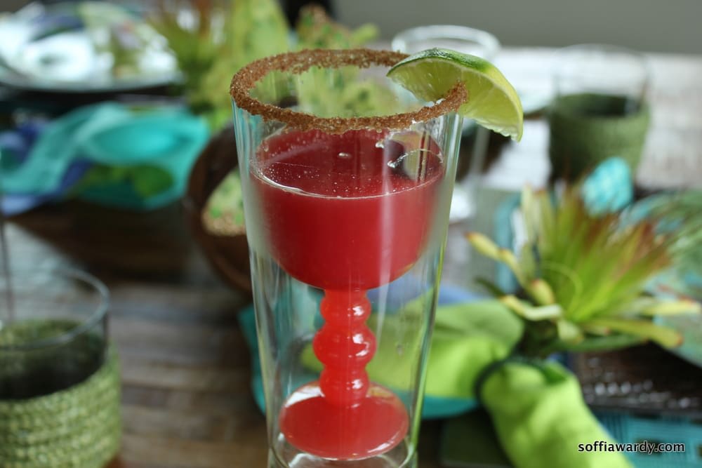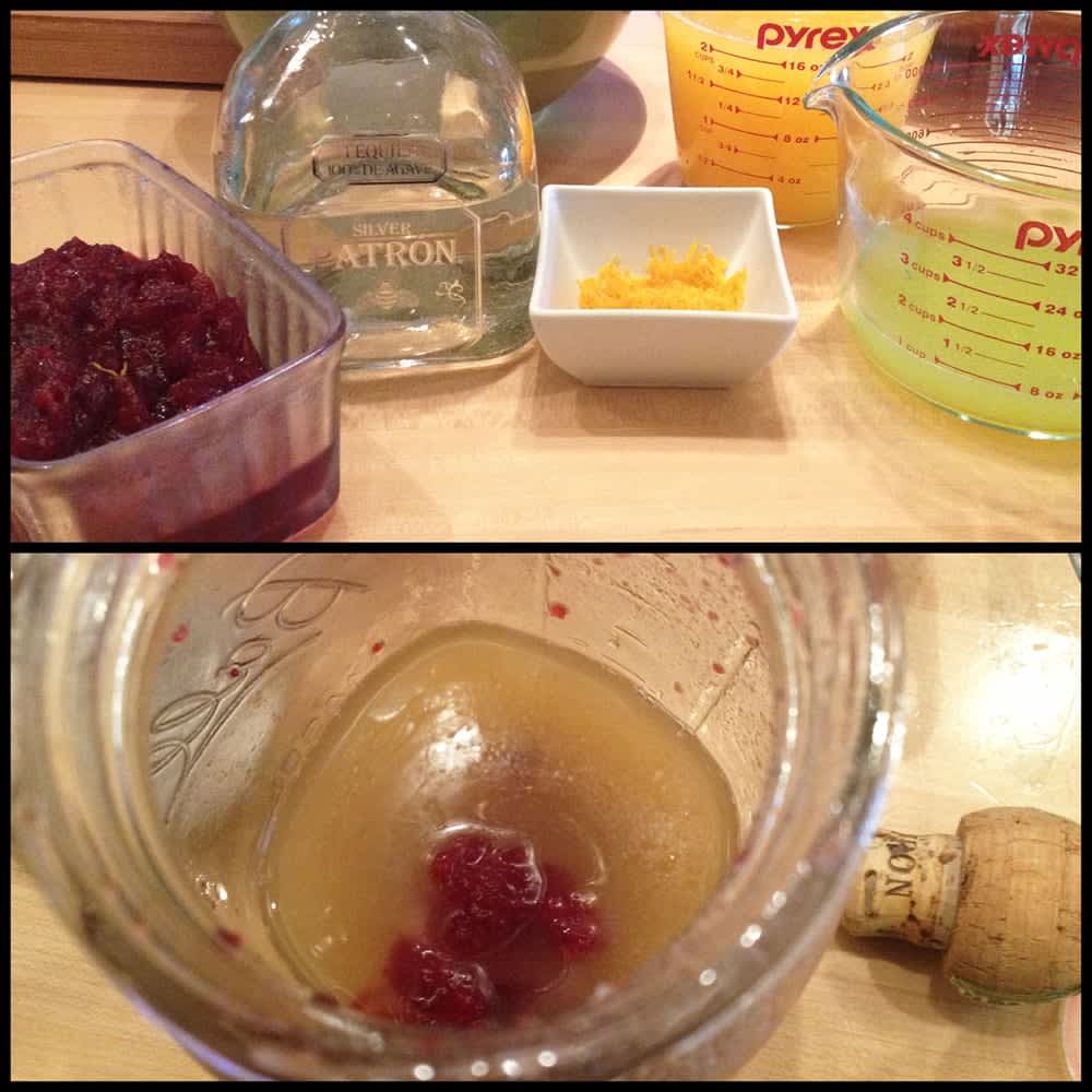 - For each cocktail, combine ½ oz. lime juice, 1 oz. orange juice, 1½ oz. tequila, and 2 Tbsp. Cranberry jam in a cocktail shaker; fill with ice. Cover and shake until outside is frosty, about 30 seconds. Strain into prepared glass.