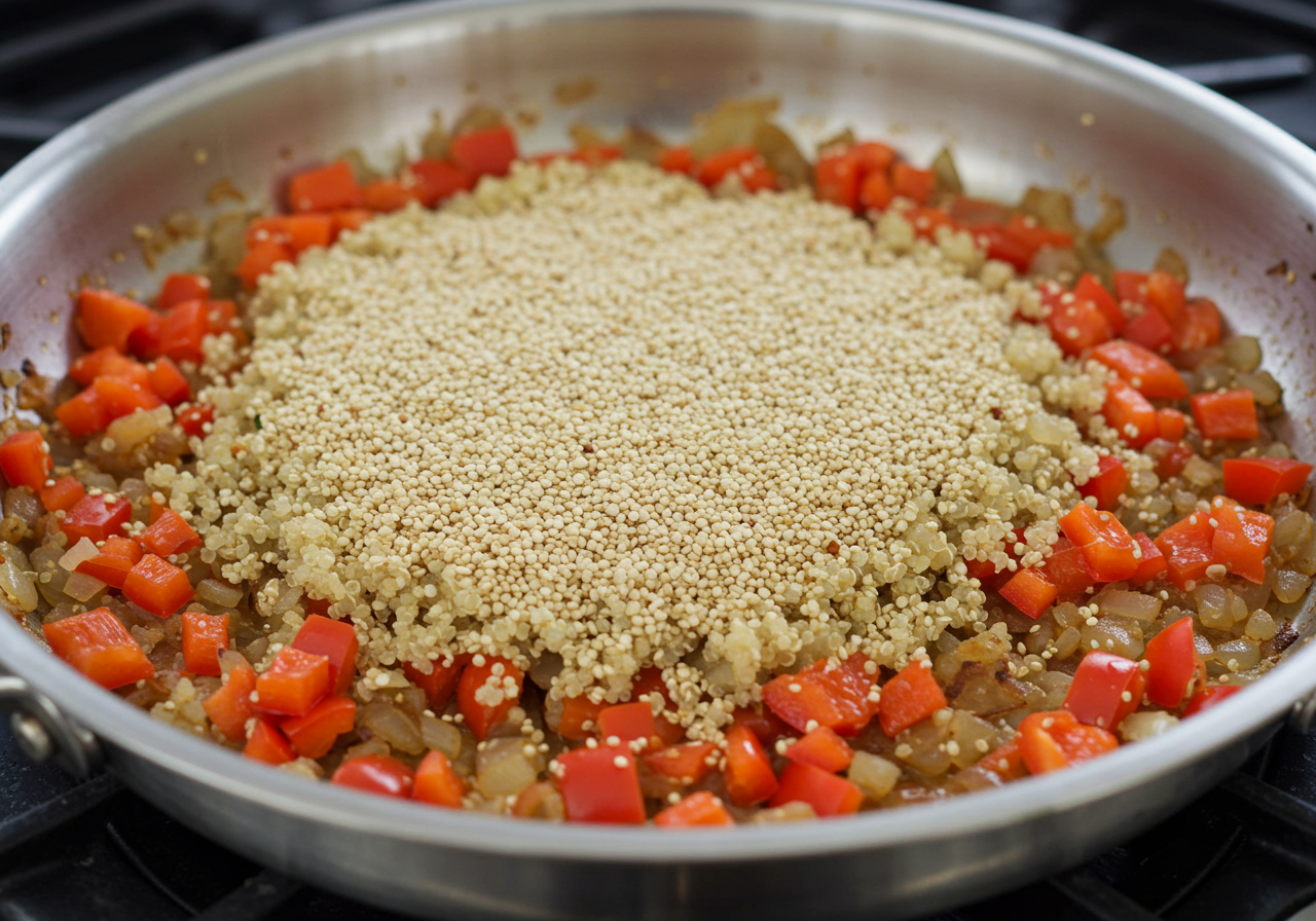 Add the quinoa and cook, stirring constantly, until coated with oil, about 2 minutes.