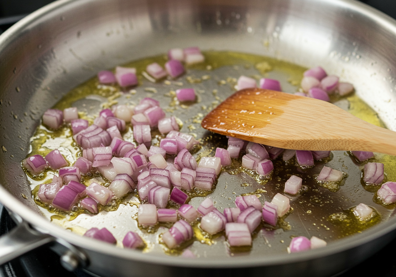Heat 2 tablespoons of the oil in a large saucepan or a high-sided skillet over medium-high heat. Add the shallots and cook until soft, about 2 minutes.