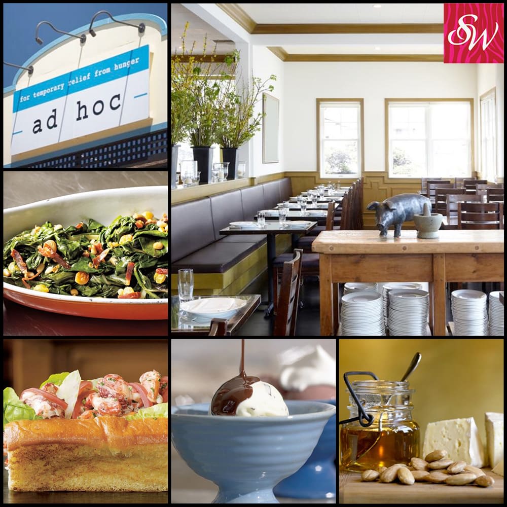 Chef Keller Thomas opened Ad Hoc in September of 2006 as a casual estery for American comfort food. Ad Hoc, literally means “for this purpose,” and was developed to temporarily fill a space while Keller developed a different restaurant concept. The temporary venue was so well received that it has become a permanent member of Chef Keller’s, Yountville restaurants. The four-course menu changes daily, featuring down home dishes served family style such as fried chicken, pot roast and barbecue.Addendum