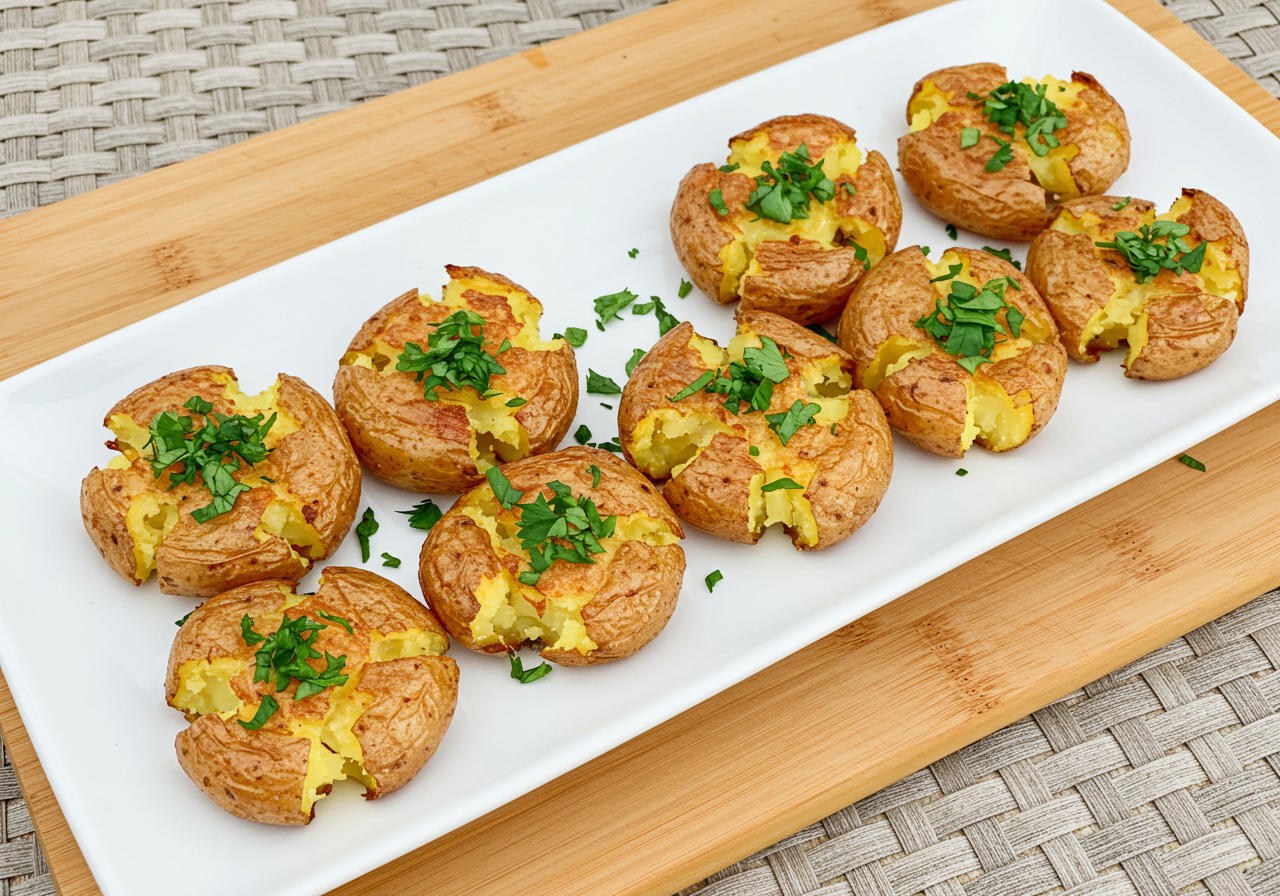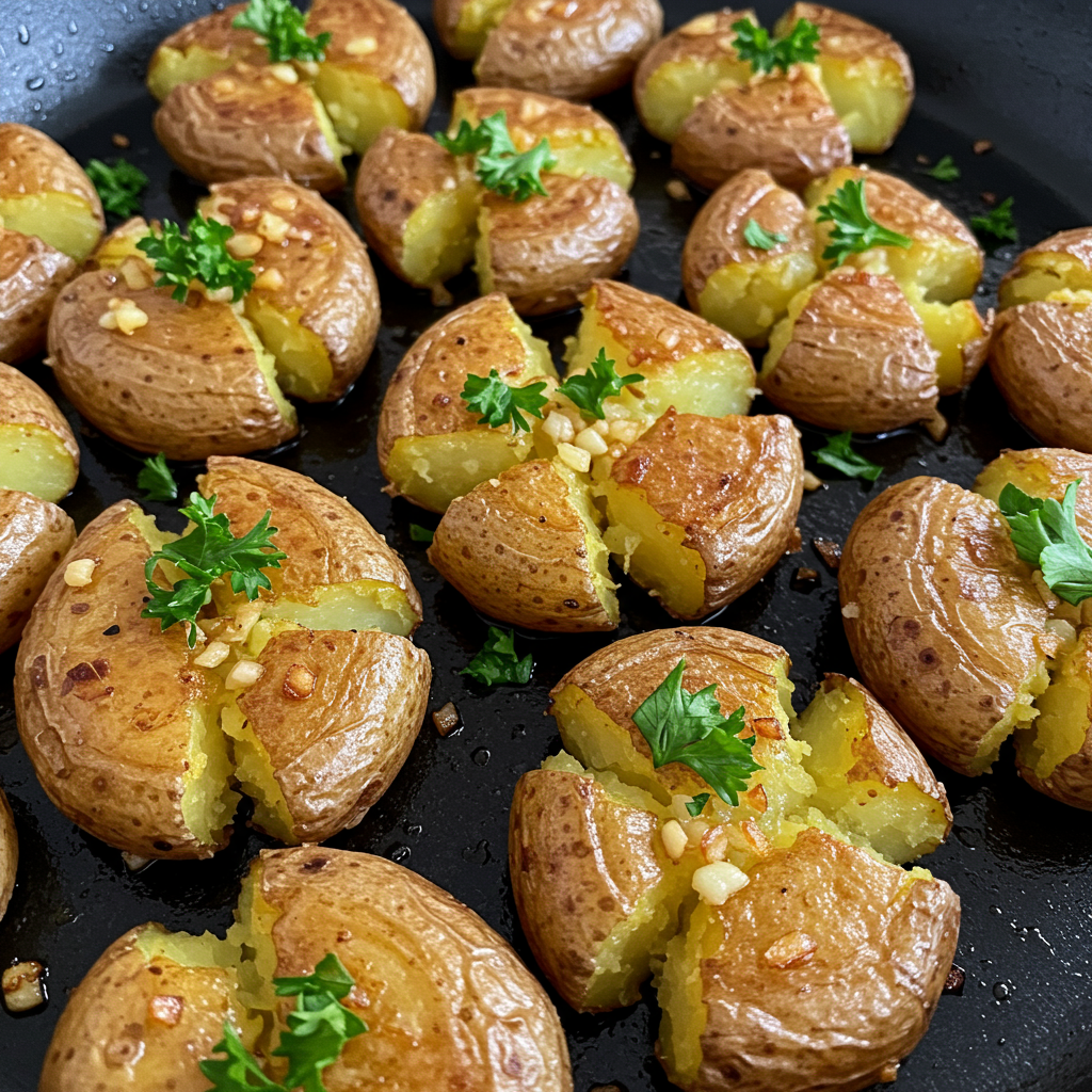 Press the other sides of the potatoes to crack and flatten them more if necessary. Sprinkle the potatoes with parsley or chives and cook until the other side is browned, about 5 minutes.