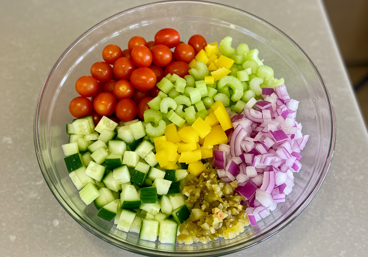 Be healthy and make it a salad, by layering sweet, spicy, and crunchy.MAKE YOUR OWN “SWEET PICKLE RELISH” TO ADD TO THE SALAD.