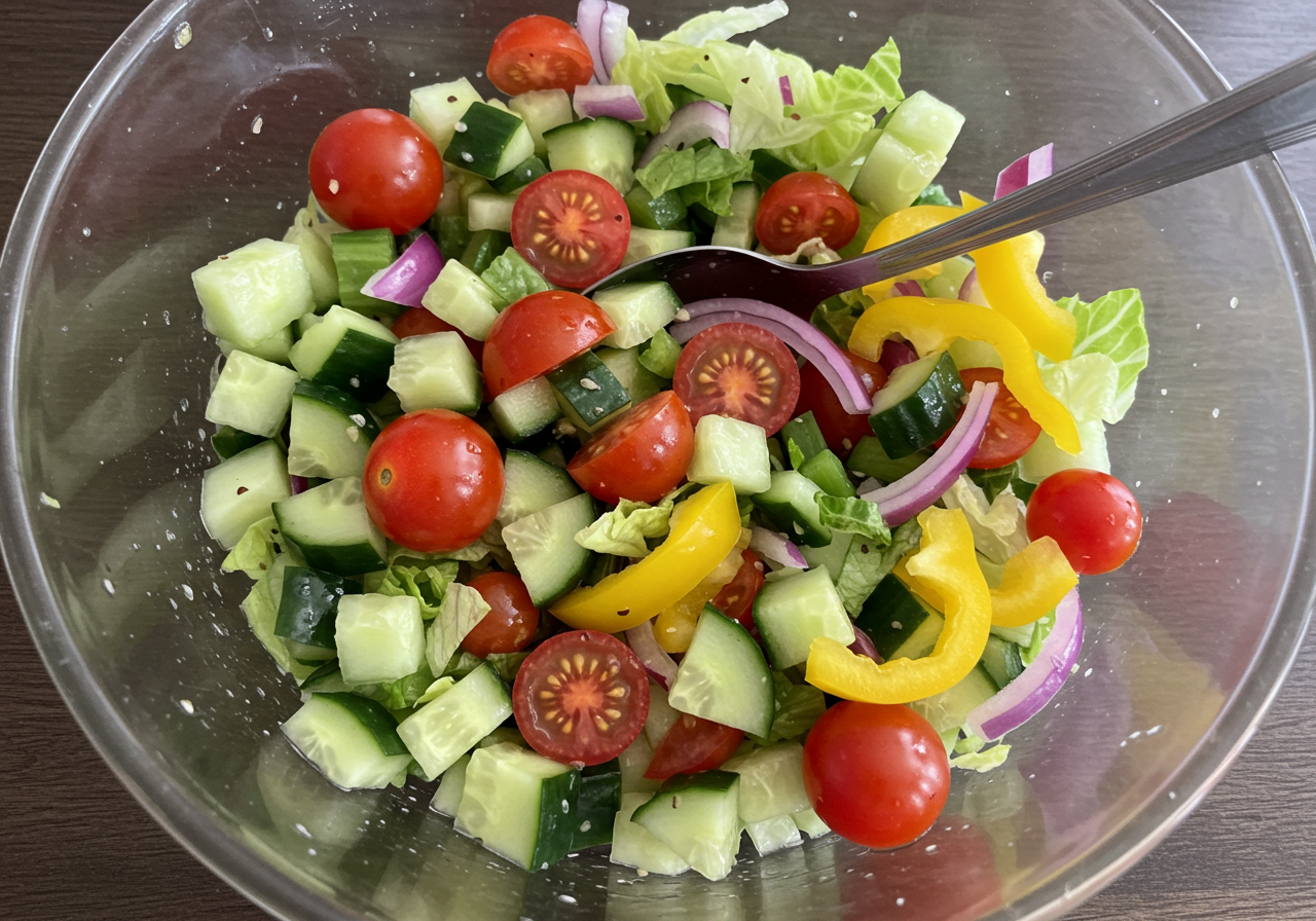 - 1 small seedless Persian cucumber, skin on, small diced.