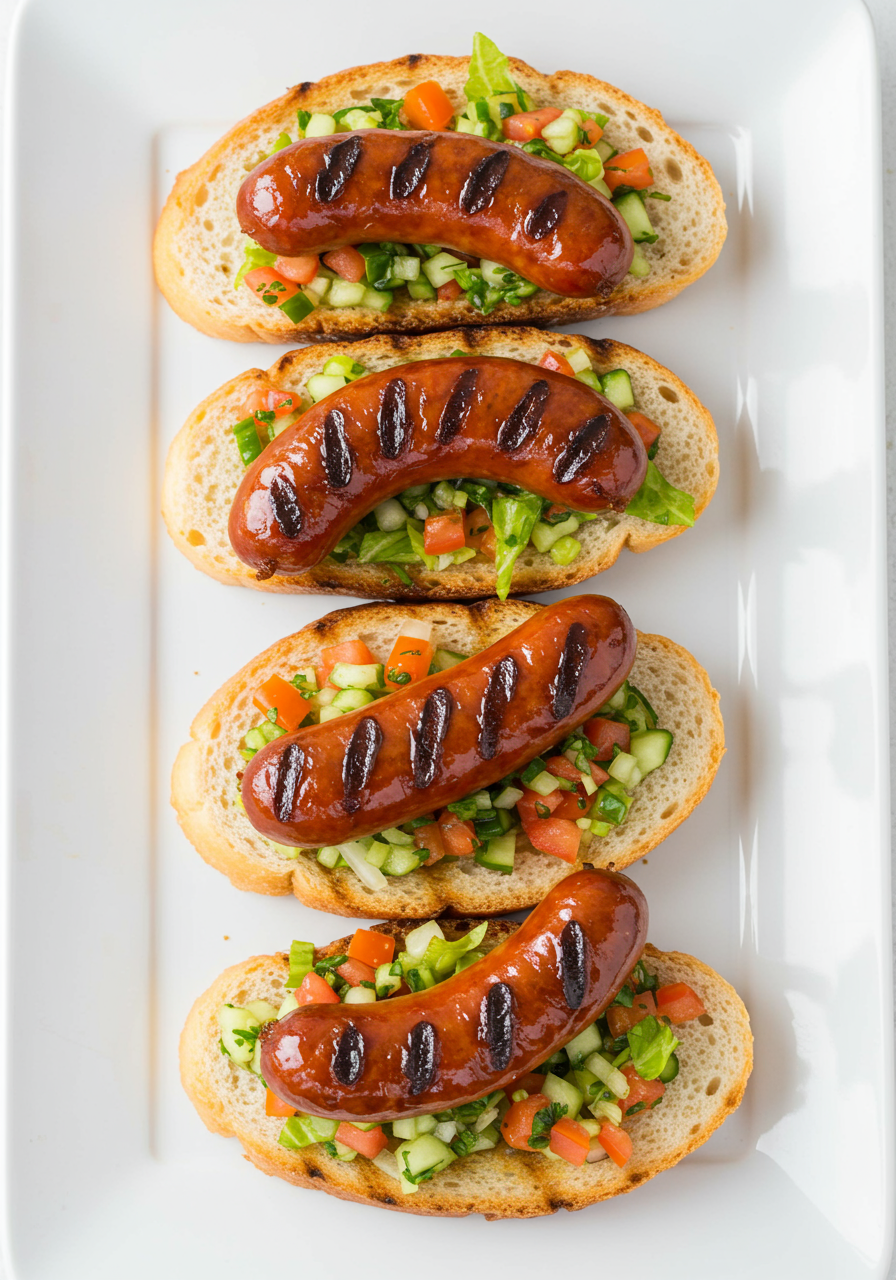 Size does matter, thick, long, and nitrate-free. I love The Great SteakhouseSteak Dogs from Allen Brothers. Create an intensely flavored, lightly charred dog with crispy edges. Shallow diagonal cuts along the dog’s length, drenched in a combination of your favorite barbecue sauce and Worcestershire sauce, will help to caramelize the dogs and make you a hero! The cuts pop open as the dog cooks, and the flavors develop.THE RELISH SALAD
