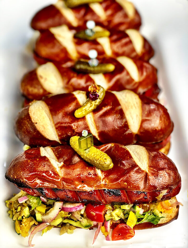 If you’re gonna eat it, make it count…go for a soft pretzel bun.THE DOG AND MARINADE