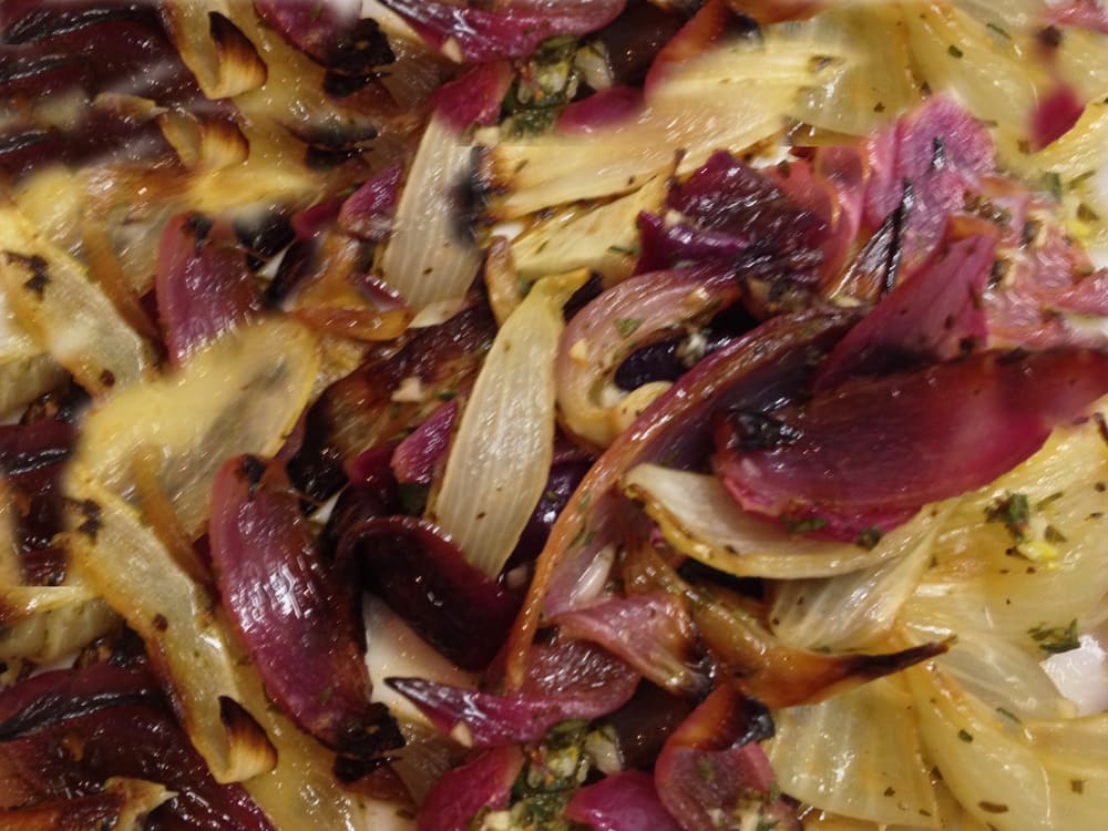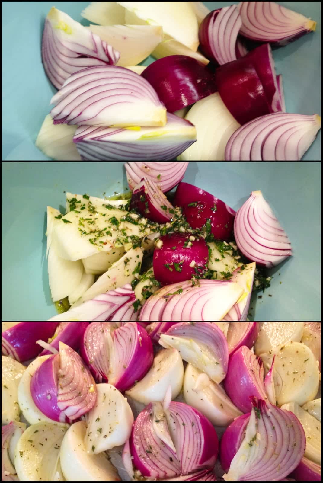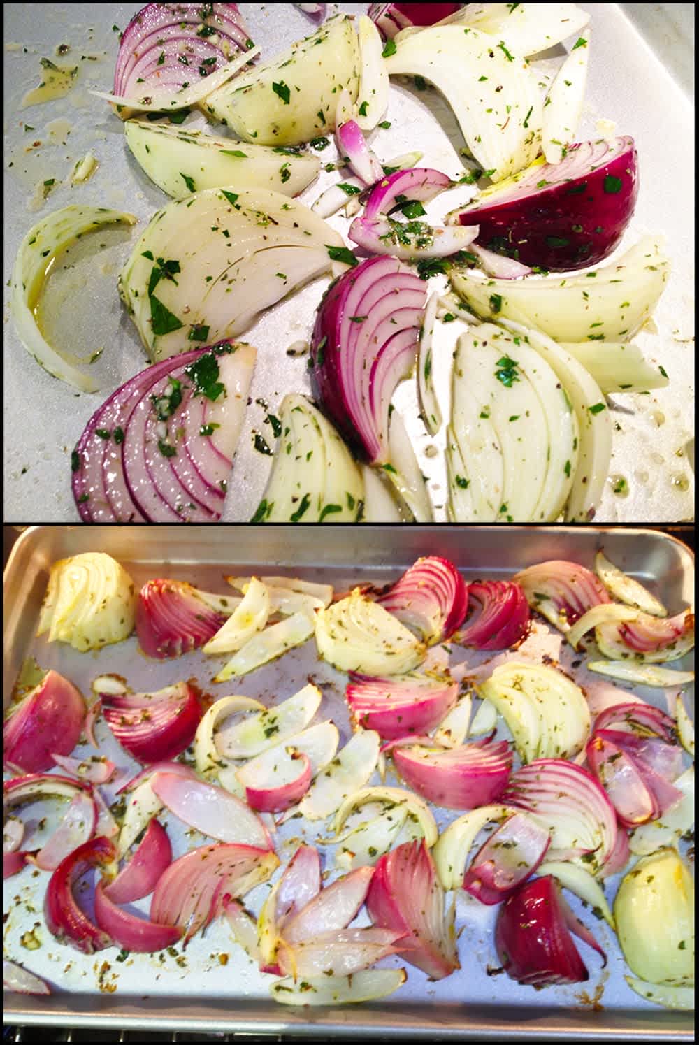 We have all searched for that perfect side dish that goes great with just about everything, well here it is. I can’t begin to explain the complexity and depth of flavors that result from slow roasting onions with an emulsified combination of herbs, mustard, a good olive oil and the acid of lemon.