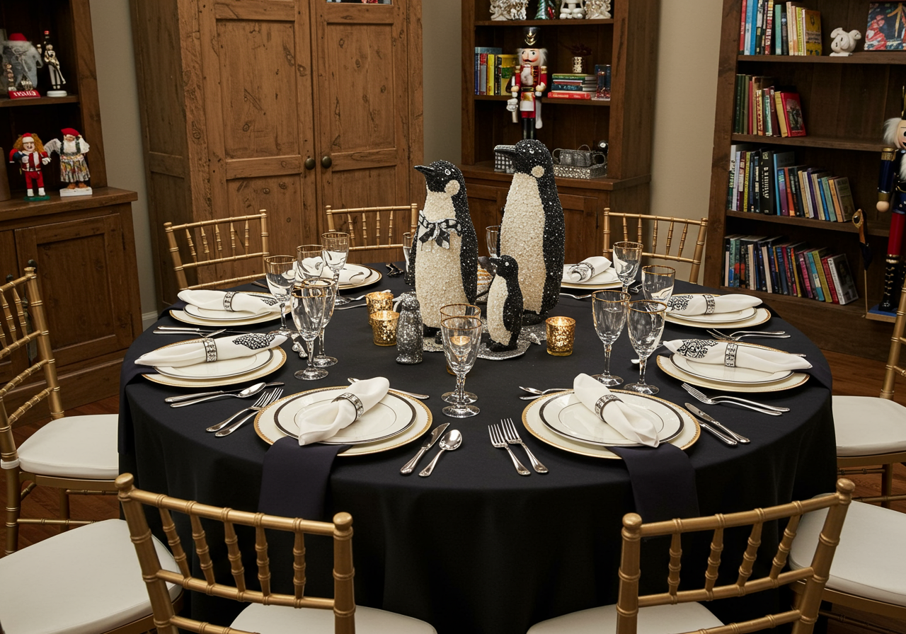 Small-ish tables are a key element of a cozy party. A magic number of guests per table is eight. Not too many for a whole-table conversation, but enough to keep the dinner discussions lively. See Perfect Party Mix for tips on how to plan seating arrangements.