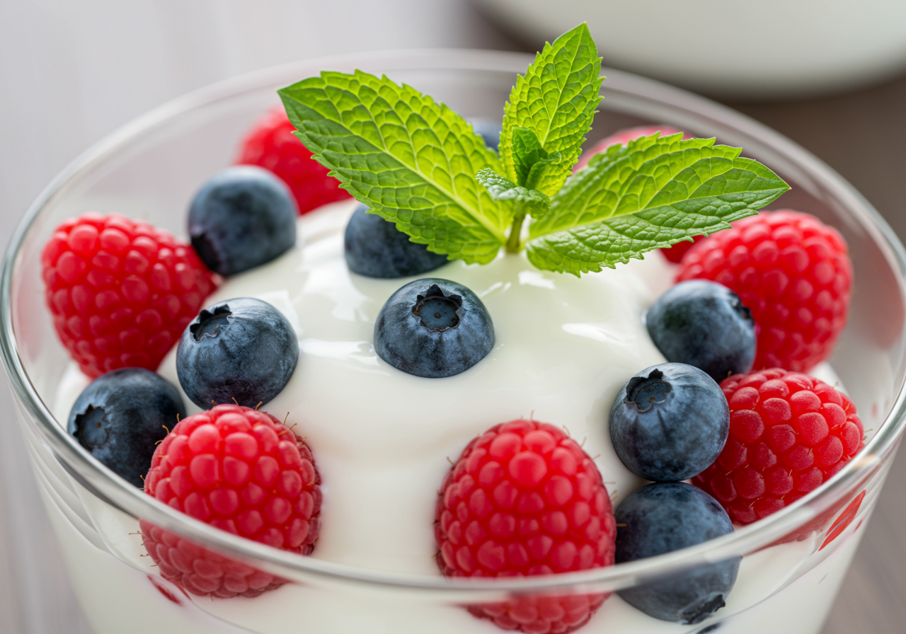 - Pour hot mixture evenly over each plate of berries, top with a sprinkling of toasted coconut and a fresh mint sprig and serve.