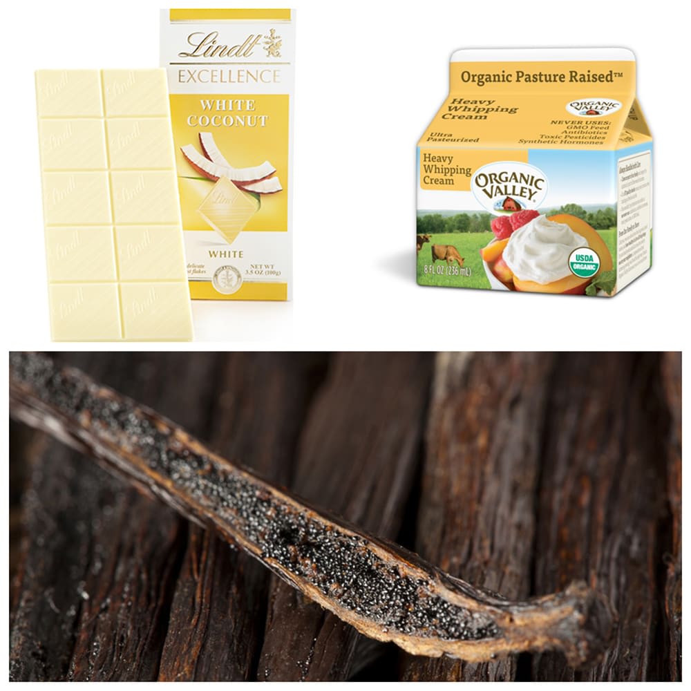 - 2–3.5 oz bars of Lindt White Coconut EXCELLENCE Bars, coarsely chopped