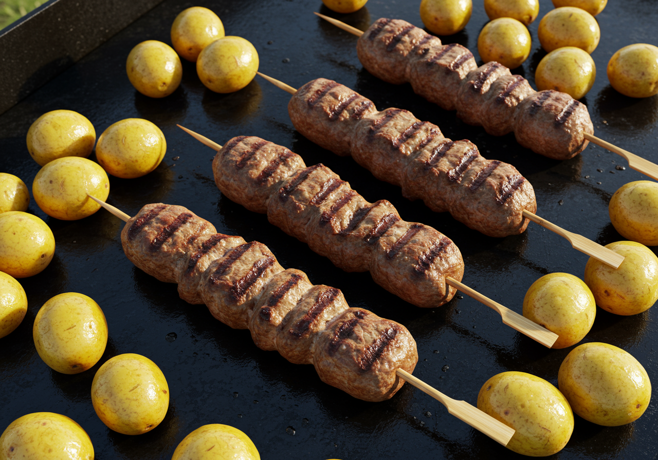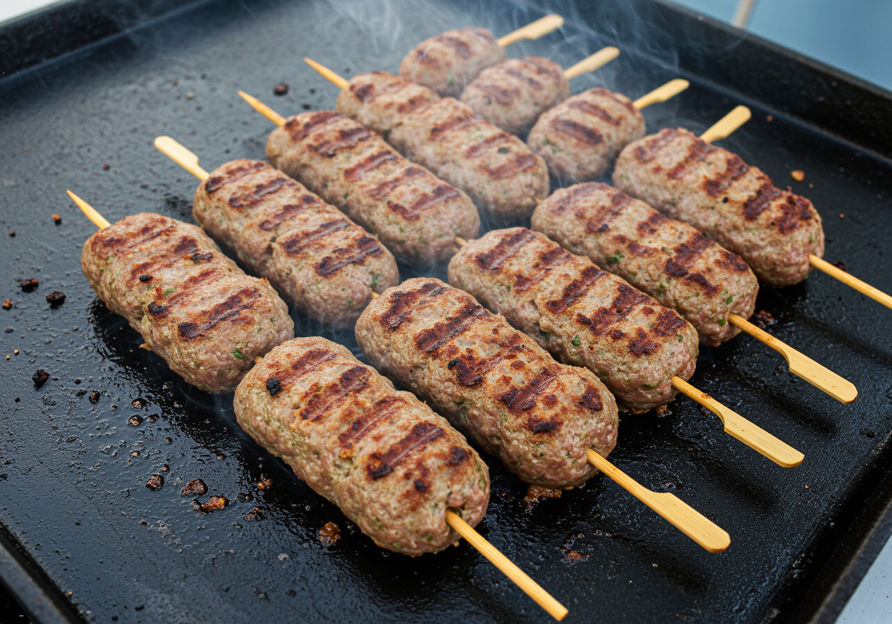 - Form 1 tbsp. Beef mixture each around the end of 22 skewers; grill, turning, until lightly charred, about 4 minutes.