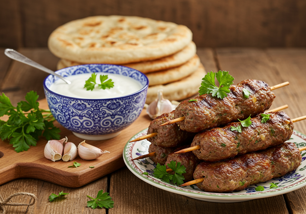 I grew up eating Kafta and have always loved the simplicity, yet deep rich flavor of charred kabobs on toasty grilled pita or Arabic bread with a dollop of yogurt sauce. The combination of flavors on these wonderful kabobs will have your taste buds dancing. Serve with some grilled pita bread, onions, potatoes, and Yogurt Mint Sauce to happily feed a crowd.