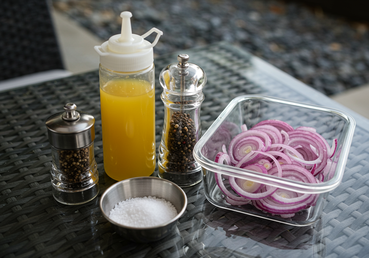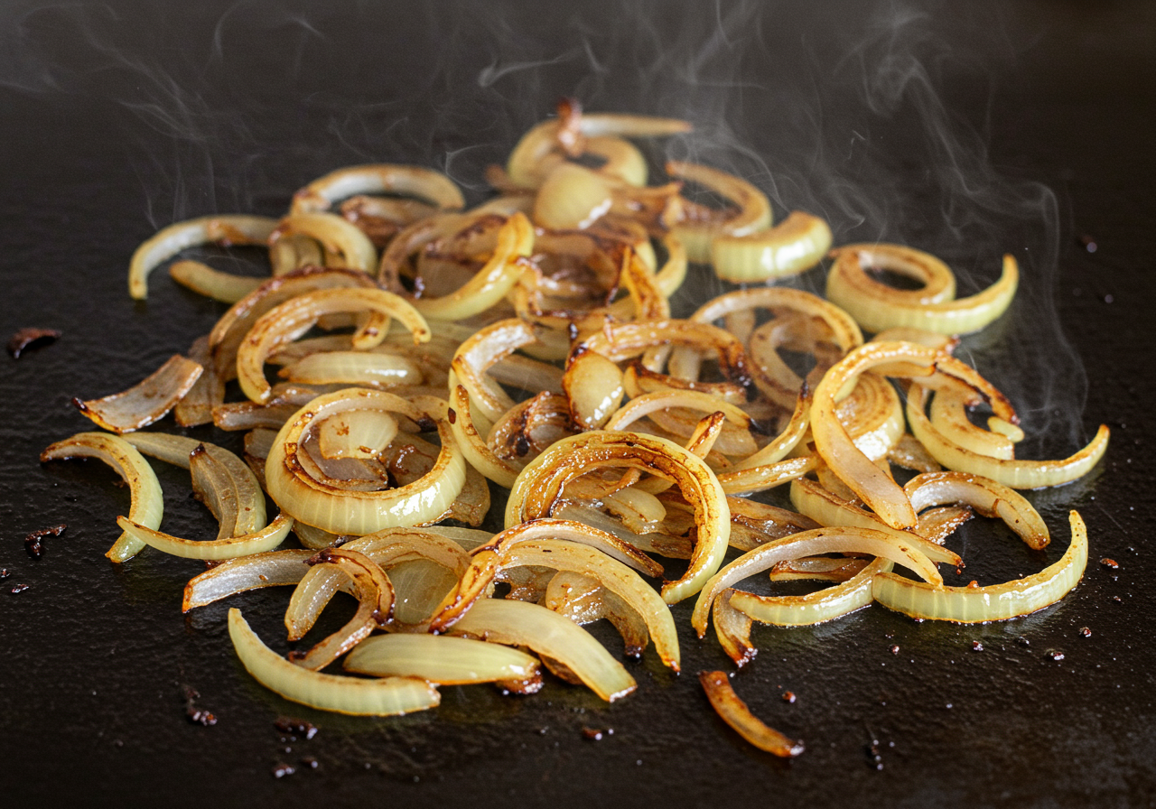 On a grill pan saute the onions until lightly charred with oil, butter, salt & pepper.