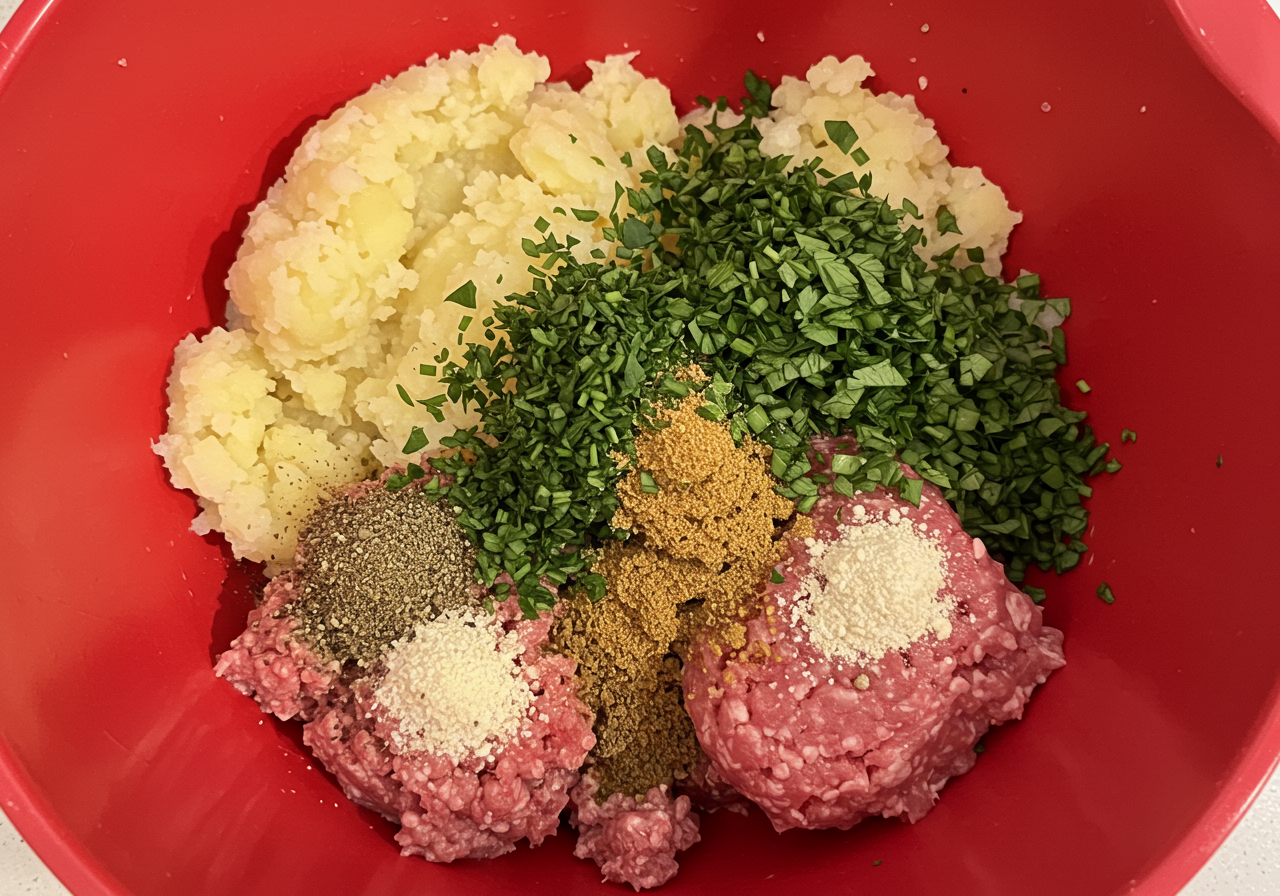 - In a large bowl, stir together beef or lamb, parsley, tomatoes, Aleppo, allspice, mint, cumin, coriander, cinnamon, drained onions, salt, and pepper.