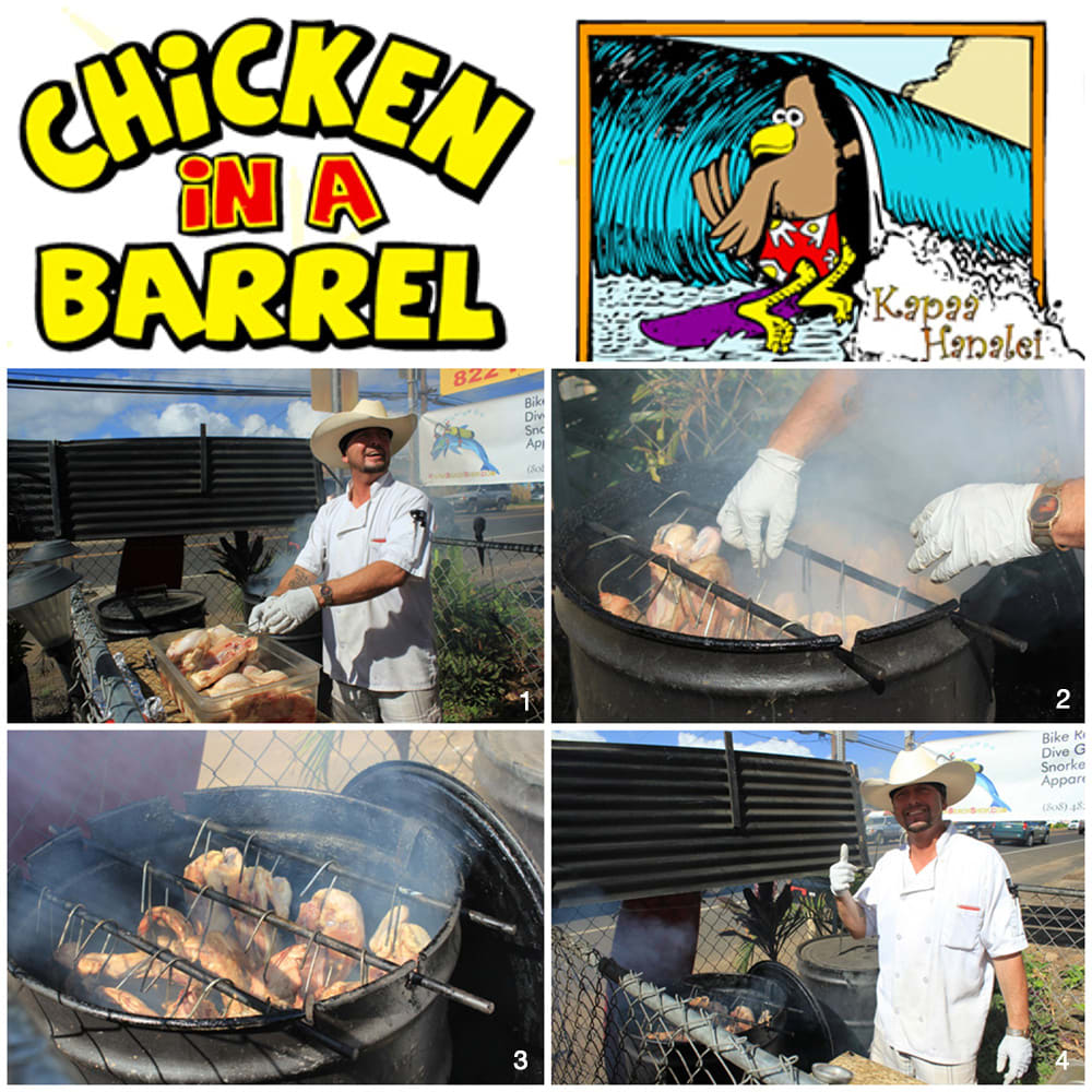 We looked up and saw that we were in front of “Chicken In A Barrel”, it’s nothing more than a roadside shack, but we had to see what this was all about. The smoke was actually coming from a custom-made 50-gallon drum Barrel Smoker that they use to cook all the featured meats. The menu contains ribs, beef, pork and chicken as well as homemade chili and Hawaiian style coleslaw. We ordered the chicken that they hang off hooks in the barrel to smoke it until it literally falls off the bone, then of course it receives a bath of mild or spicy barbecue sauce.