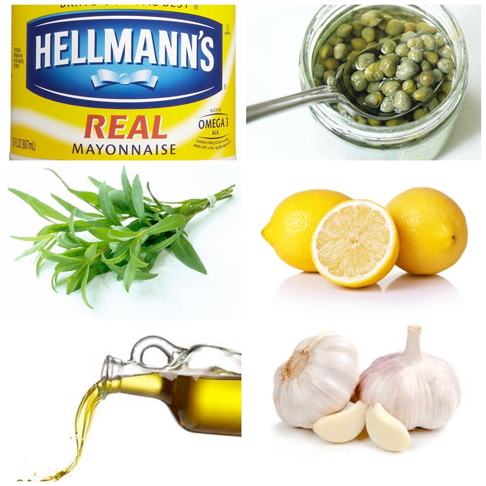 In a small bowl, whisk the mayonnaise with lemon juice, capers, tarragon, and garlic. Whisk in the olive oil in a steady stream and season with salt and pepper and add more or less Tabasco to taste. Use on grilled chicken, pork, fish and shellfish.