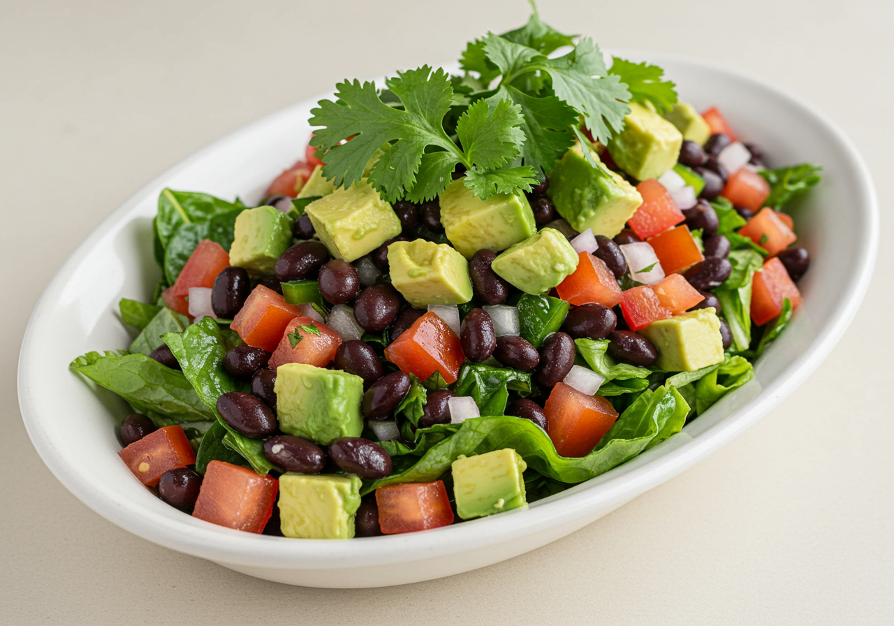 - Serve beans in a bowl, on top of greens. Top beans with diced avocado, chopped cilantro and a drizzle of olive oil and some lime wedges on the side.
