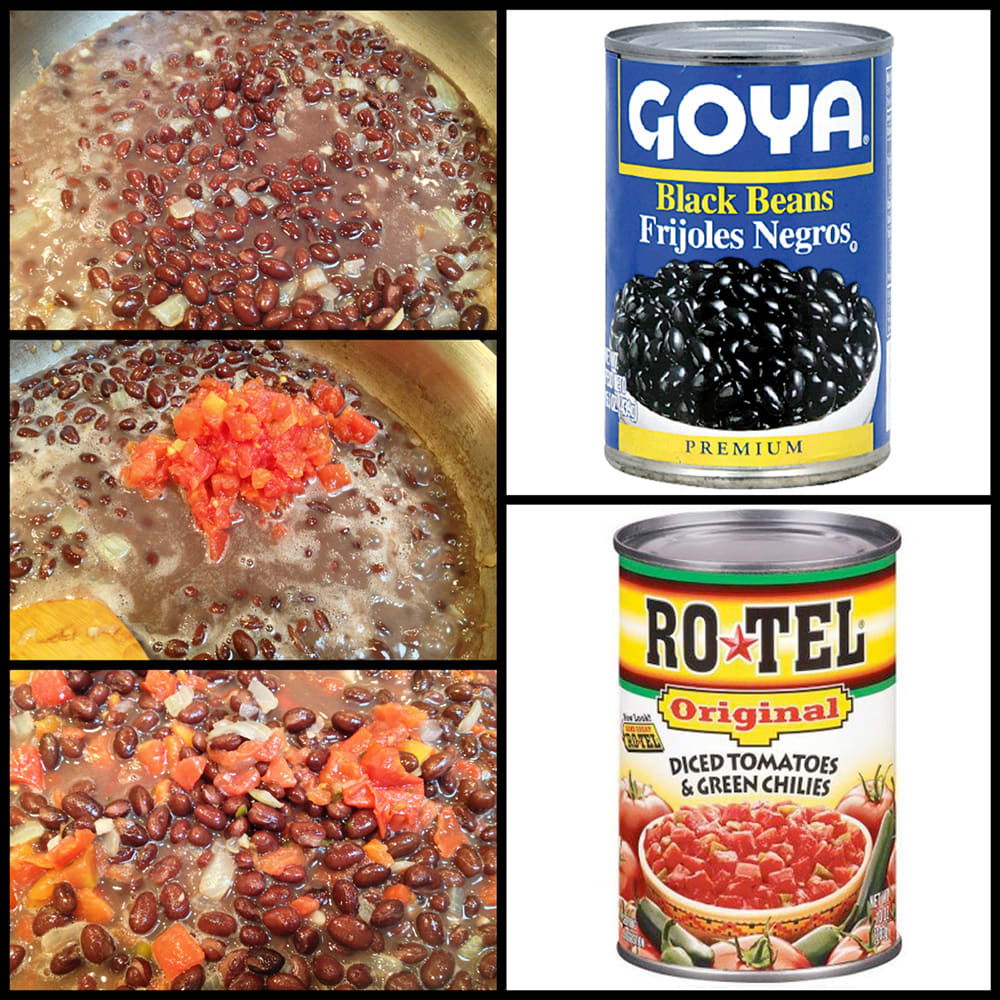 We like “Goya” brand, canned black beans the best. Your favorite brand will work just as well.