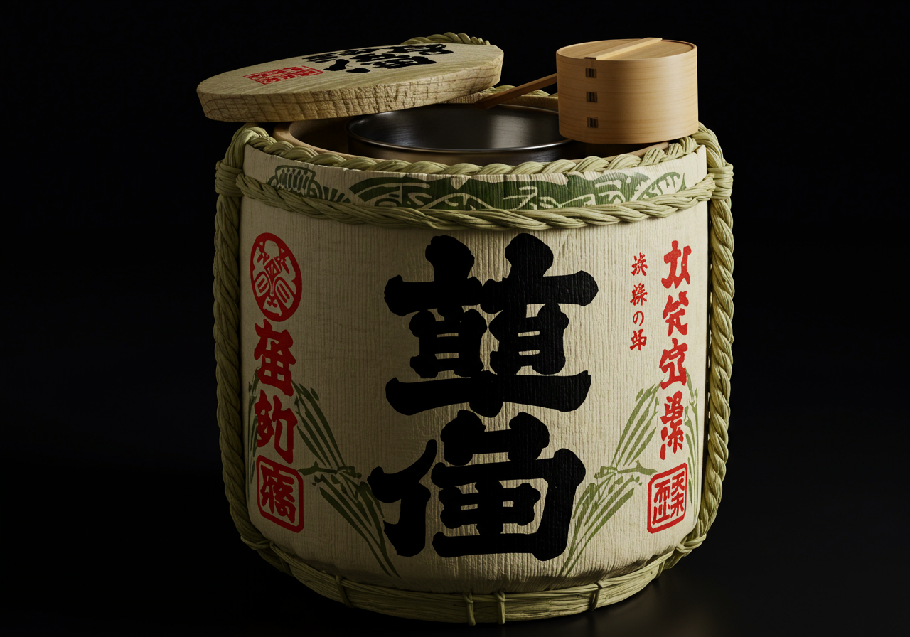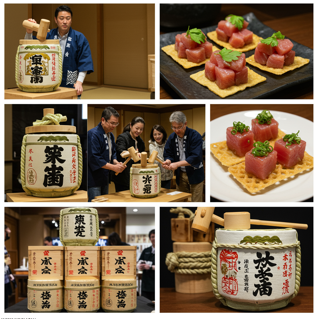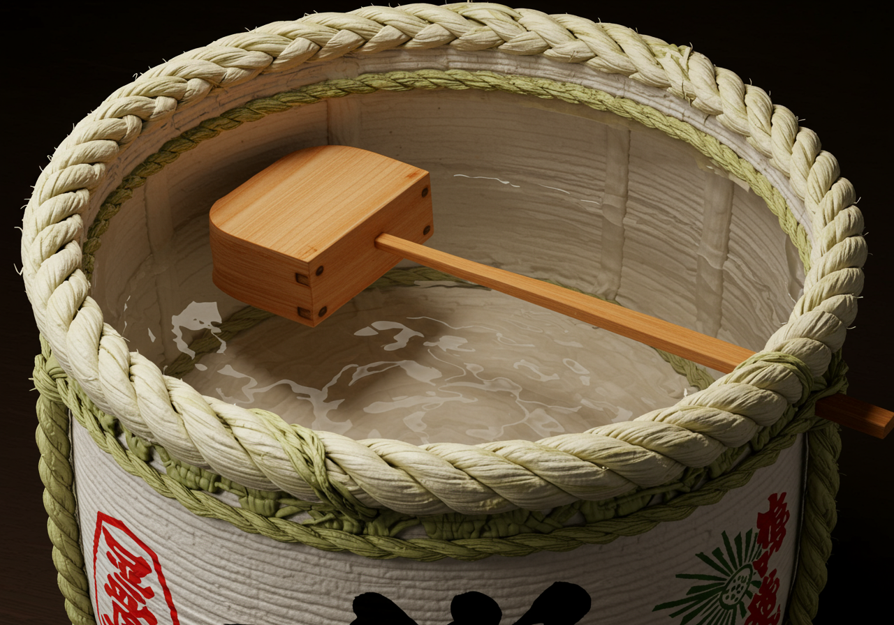 Special sake boxes are used to serve the Hokusetsu sake at the ceremony.