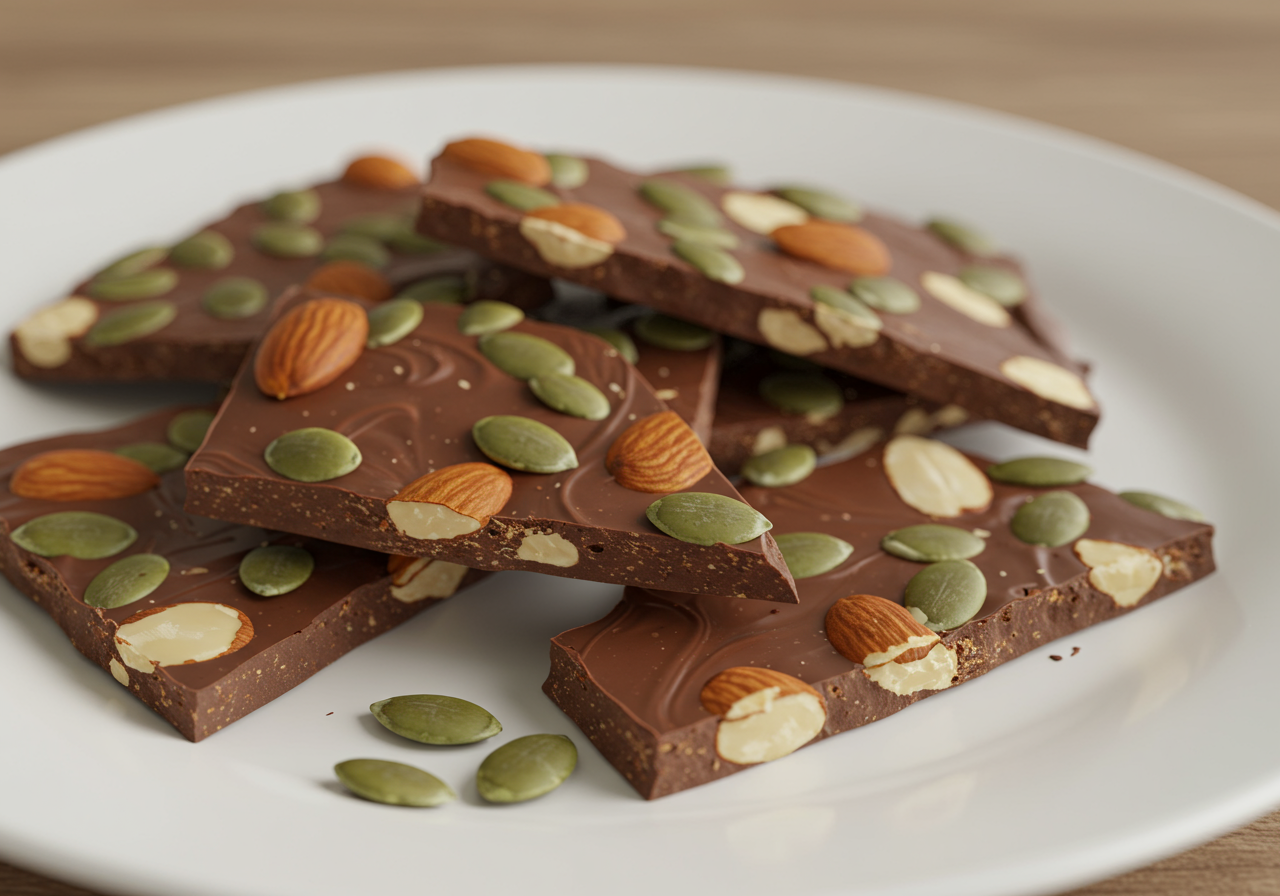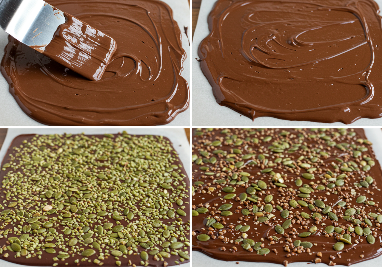 - Sprinkle the pepitas over the top of chocolate while it is still wet.