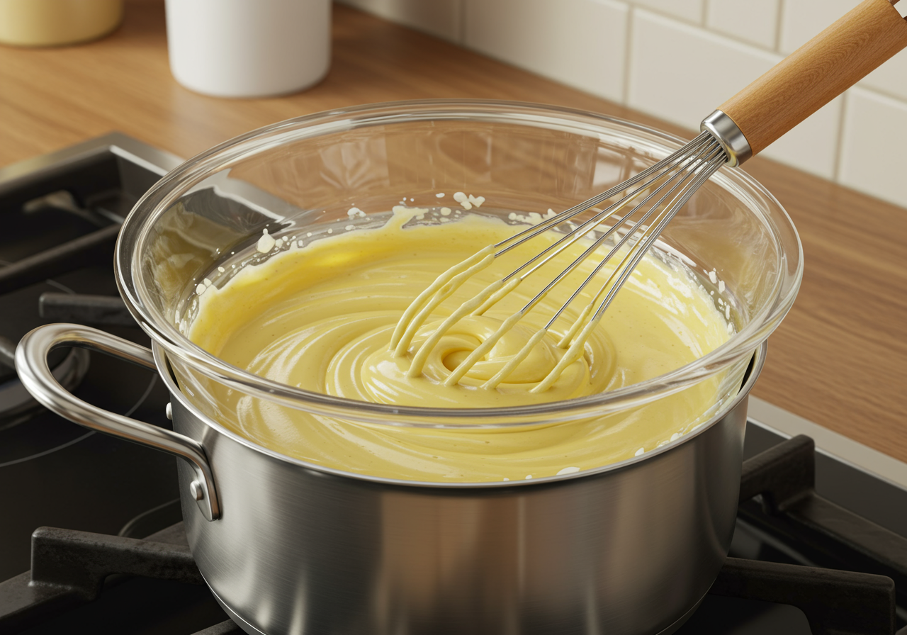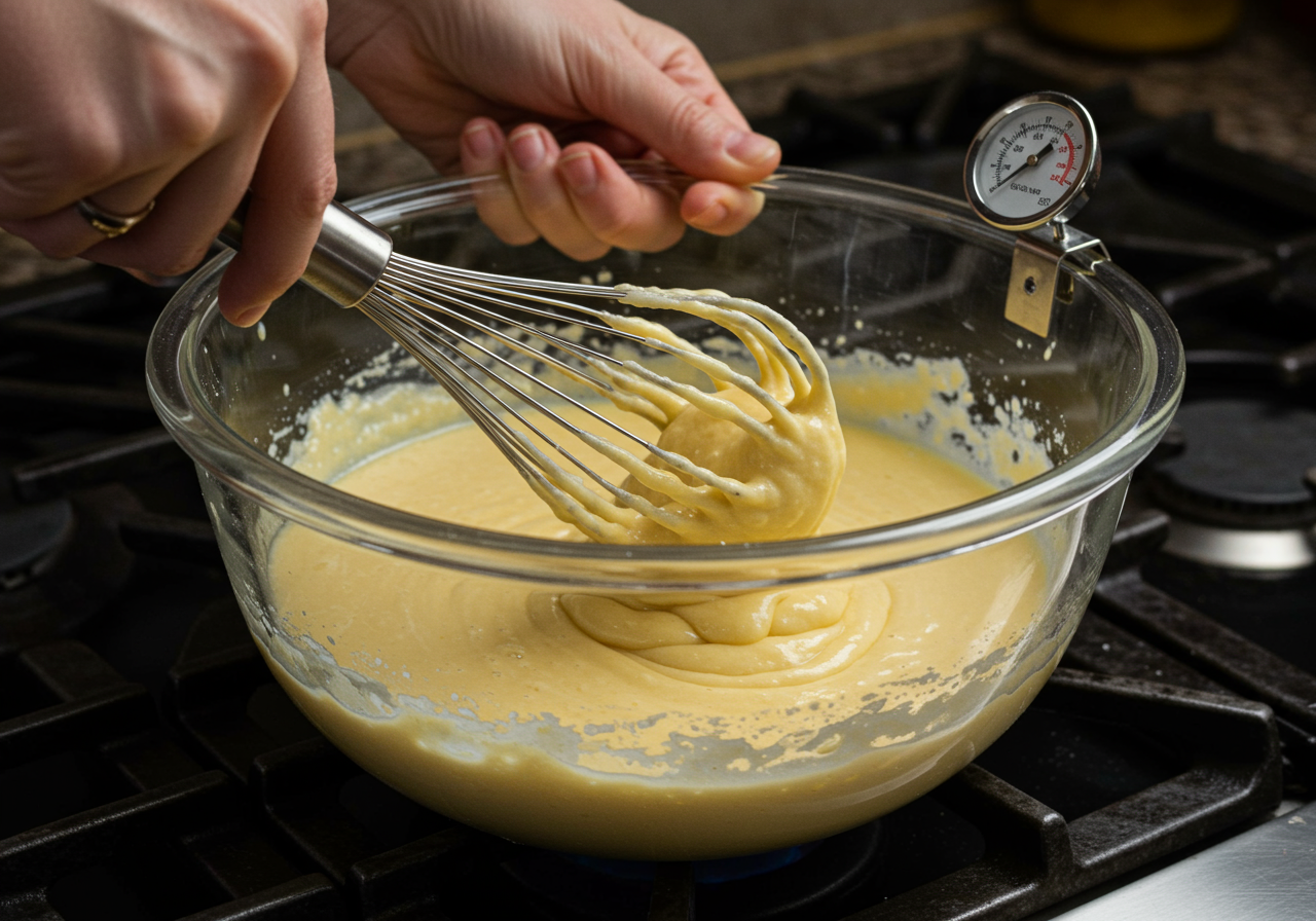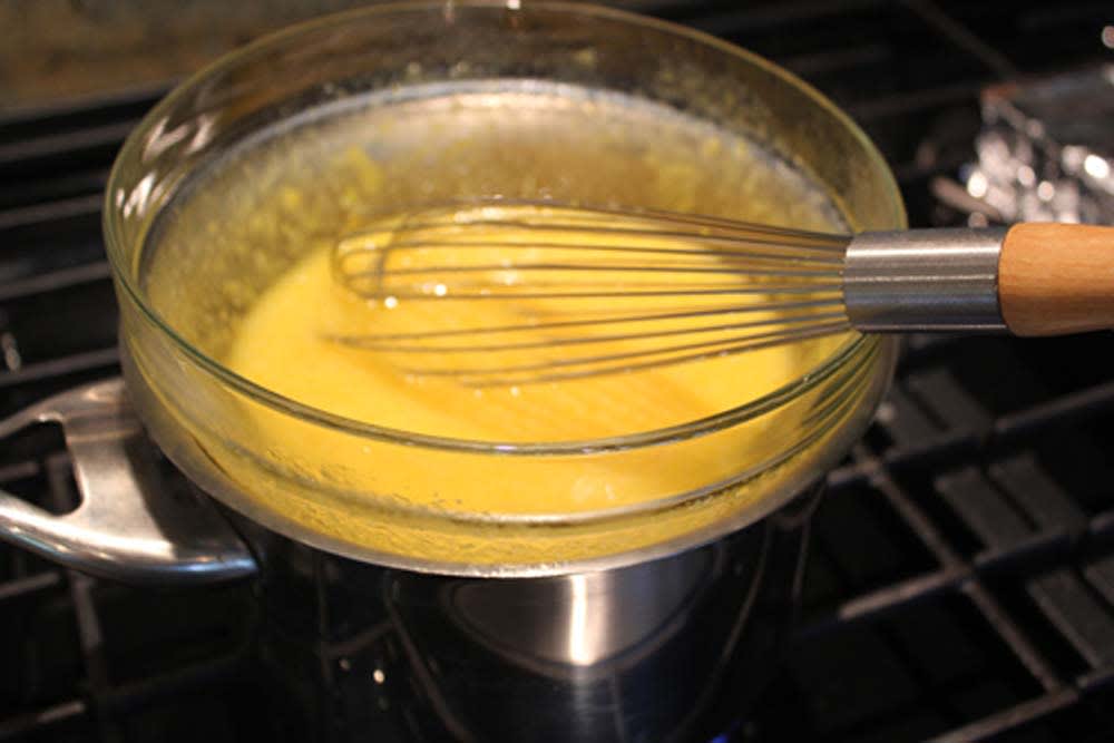 Add lemon juice and continue whisking until mixture is thick and reaches 160 degrees on an instant read thermometer. Scraping downsides of bowl as necessary.