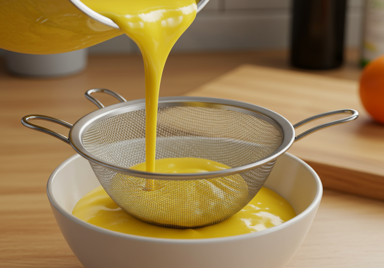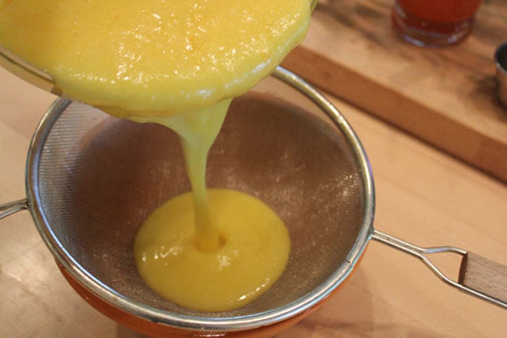 Add butter and whisk until well combined, strain lemon mixture through a fine mesh sieve and allow to cool.
