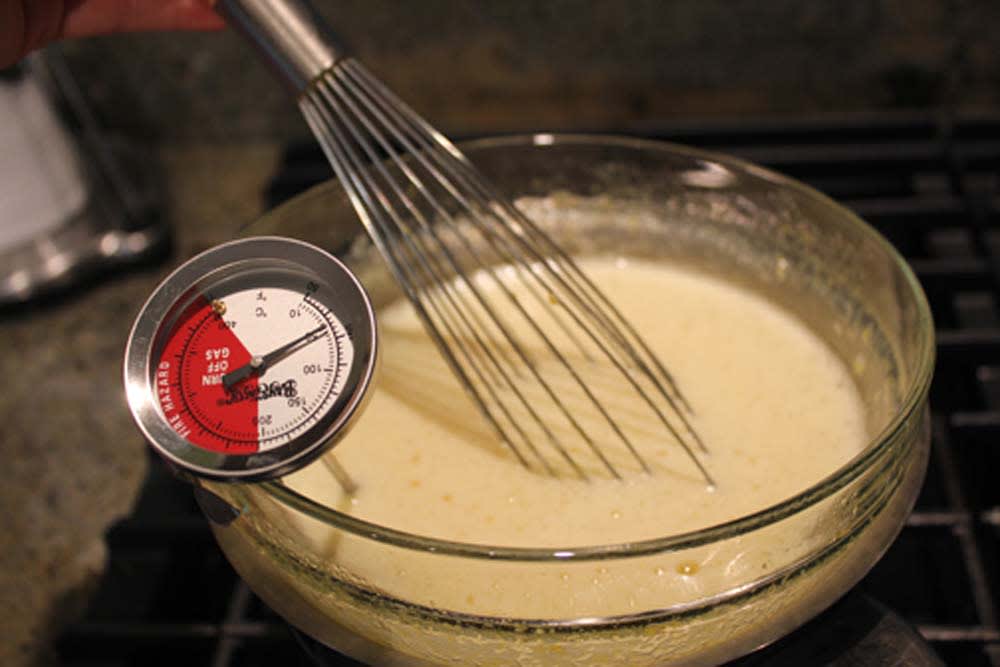 Add lemon juice and continue whisking until mixture is thick and reaches 160 degrees on a instant read thermometer. Scraping down sides of bowl as necessary.