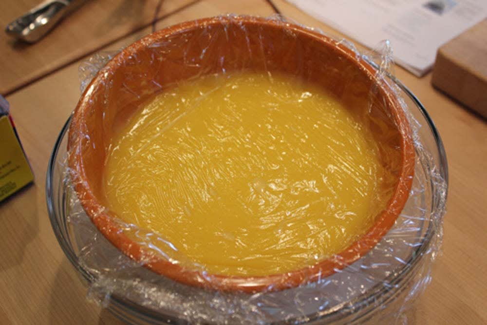 Cover lemon curd with plastic wrap pressing wrap directly onto surface, transfer to refrigerator and chill completely.