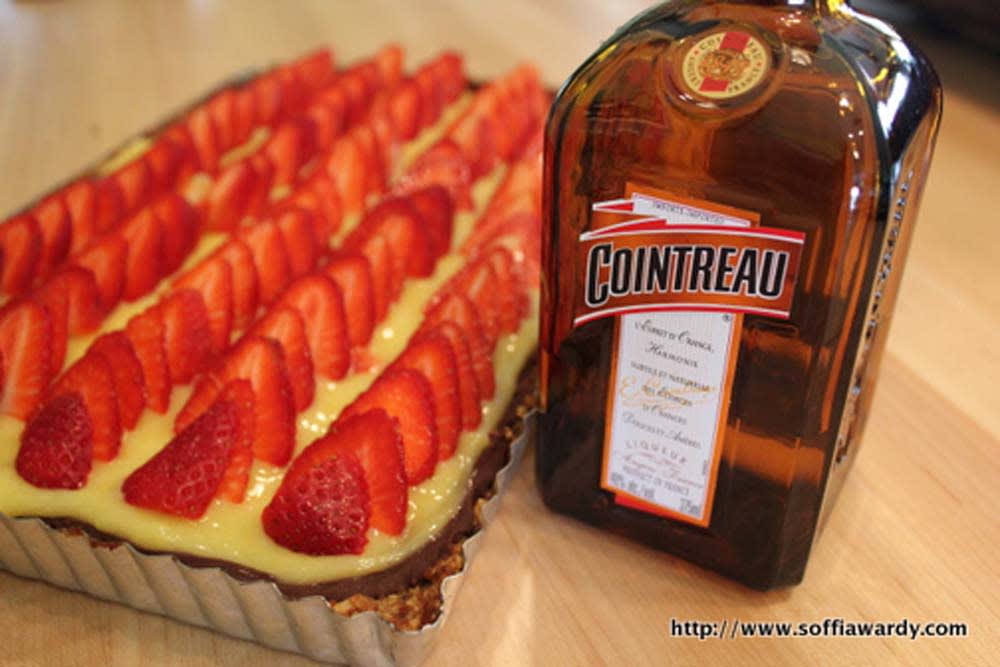 In a small sauce pan on medium heat, mix strawberry jelly and Cointreau until melted and combined.