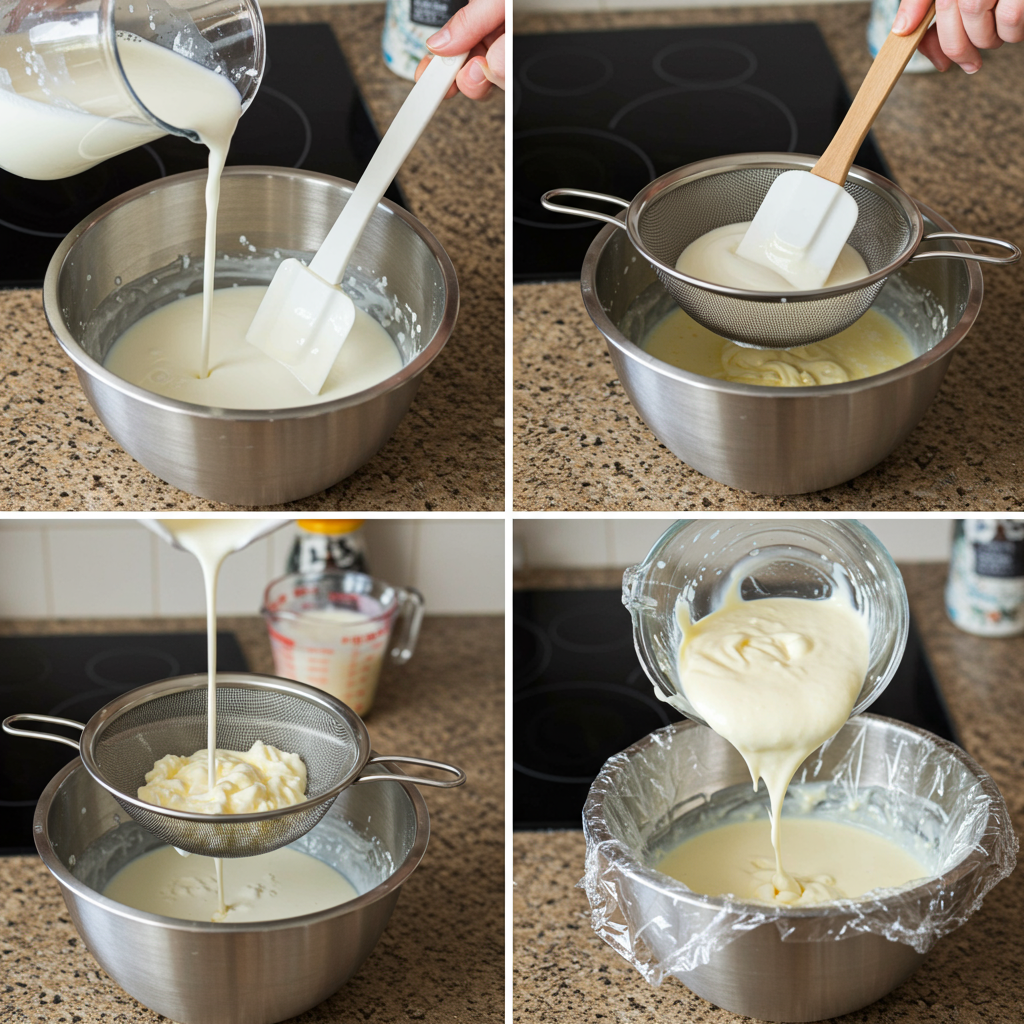 Strain the custard through a fine sieve into a bowl, pressing hard on the zest, and chill it.