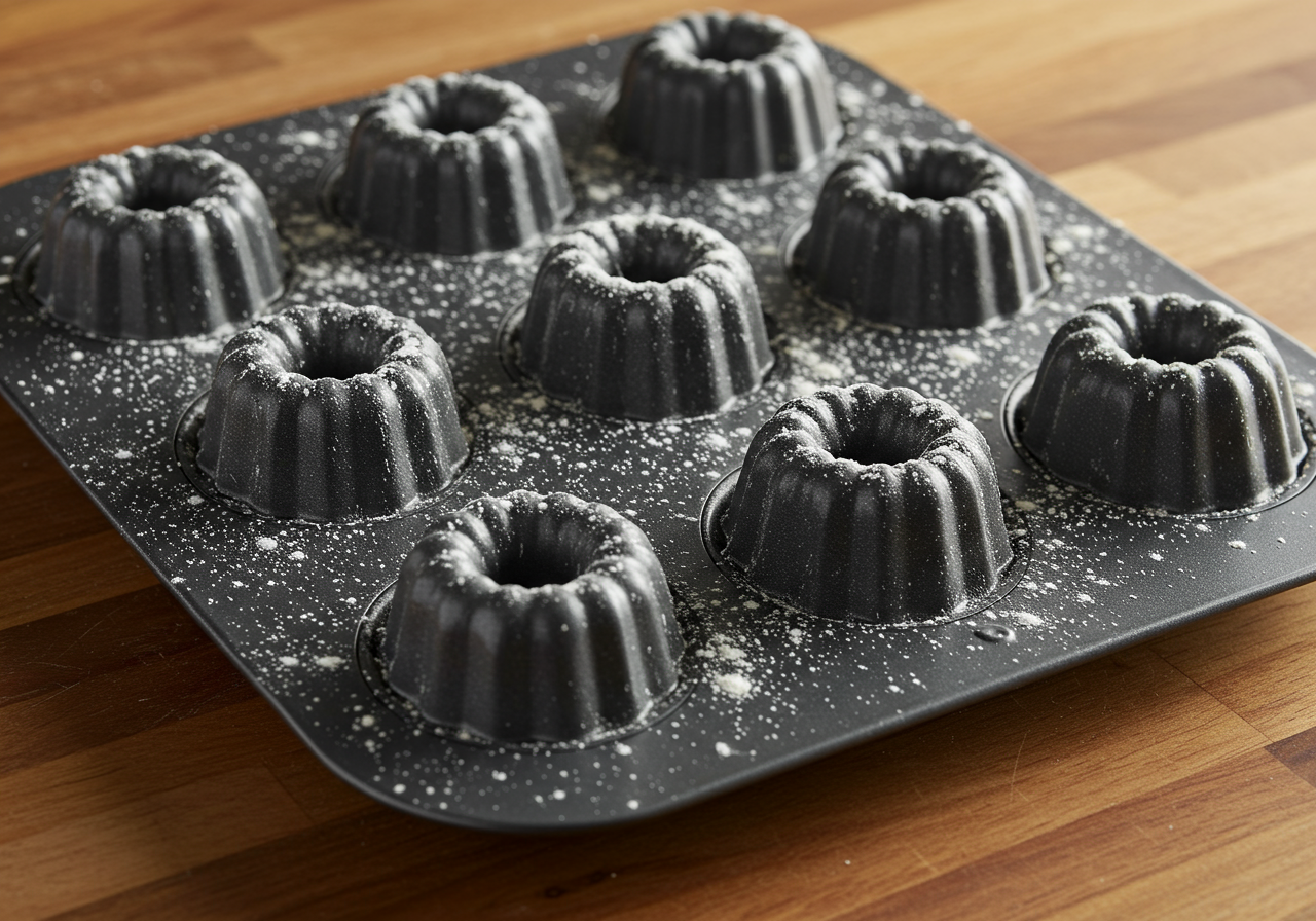 - Spray mini bundt pan with non stick spray.
