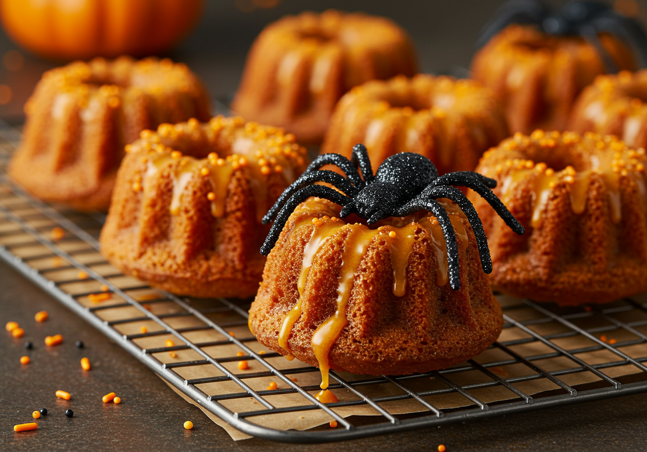 Position a rack in the center of the oven and preheat the oven to 350 degrees F. Spray the mini bundt pan with nonstick spray.