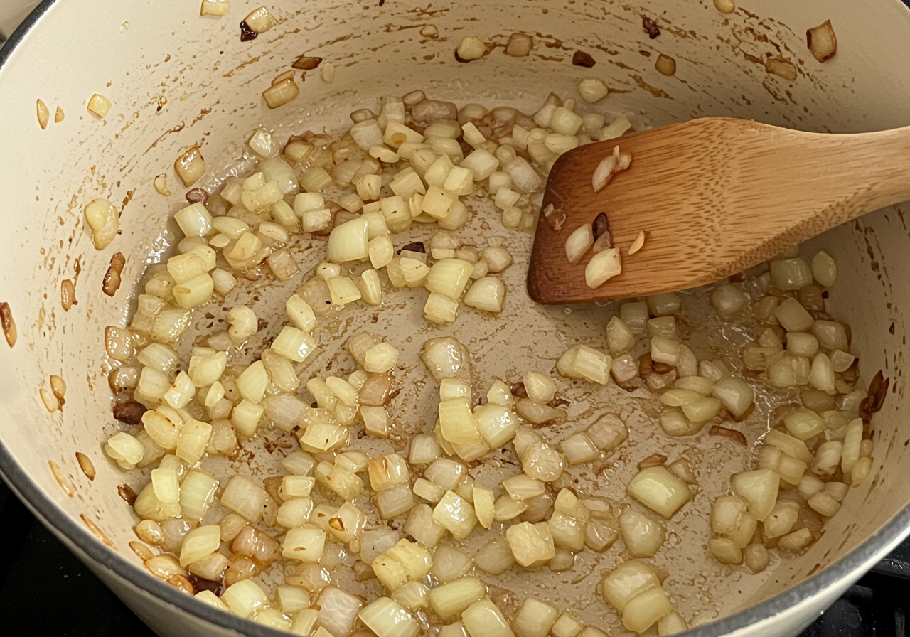 Reduce the heat to medium and warm the remaining 1 Tbs. olive oil. Add the onion and cook, stirring occasionally, until tender, 6 to 8 minutes.