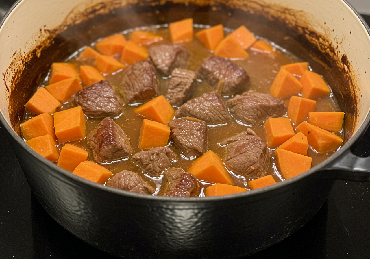Remove pot from oven, add cubed squash, and cook for an additional 1-1/2 hours until pork and squash are fork tender.