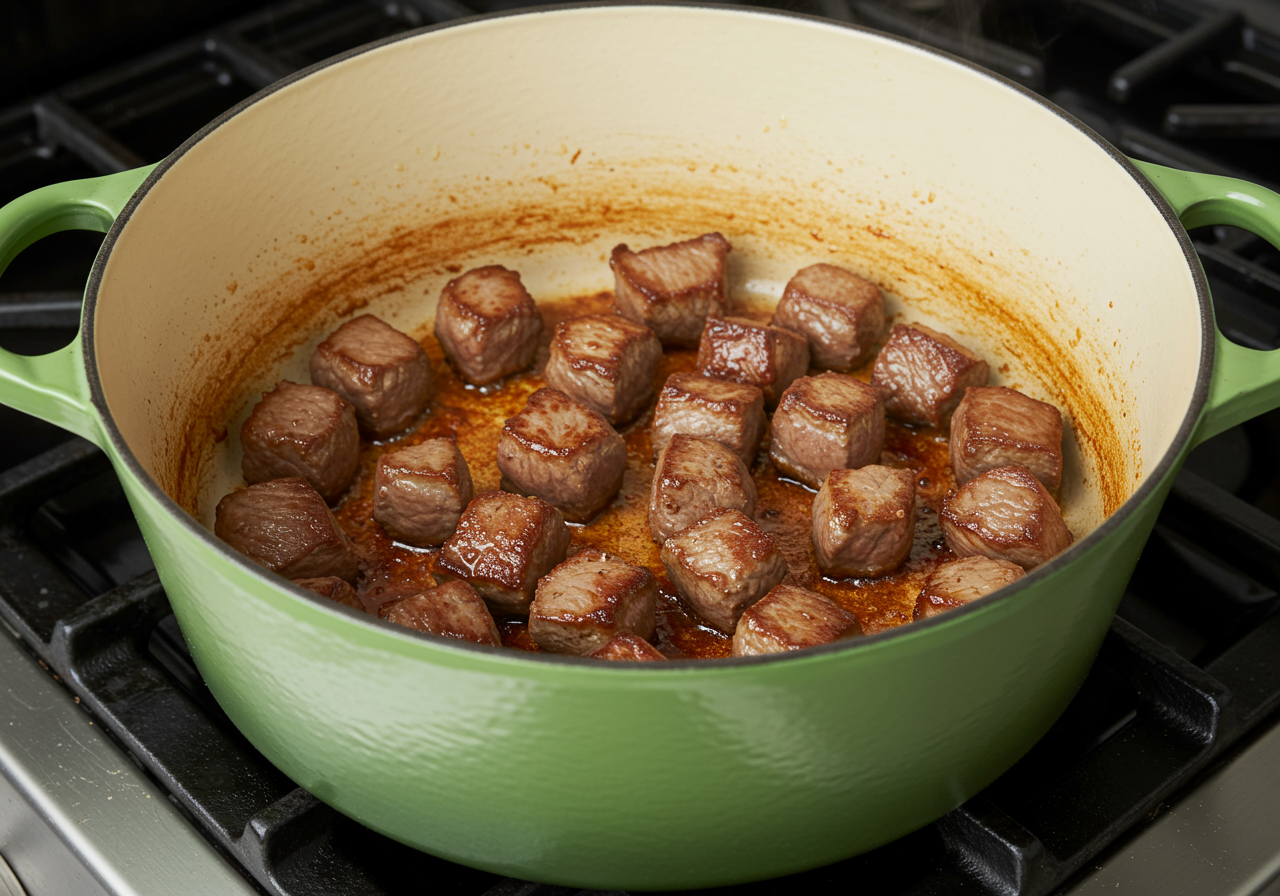 Working in batches, brown the pork on all sides, for 8 to 10 minutes per batch. Transfer to a plate.