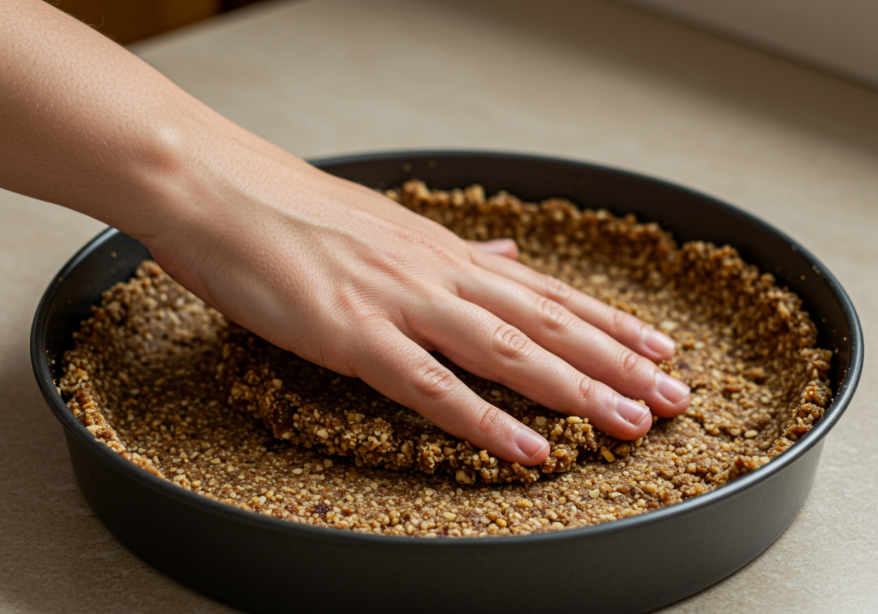 - Press mixture into the bottom and sides of a spring form pan and place in the freezer to set, while preparing filling, chill 30 minutes.