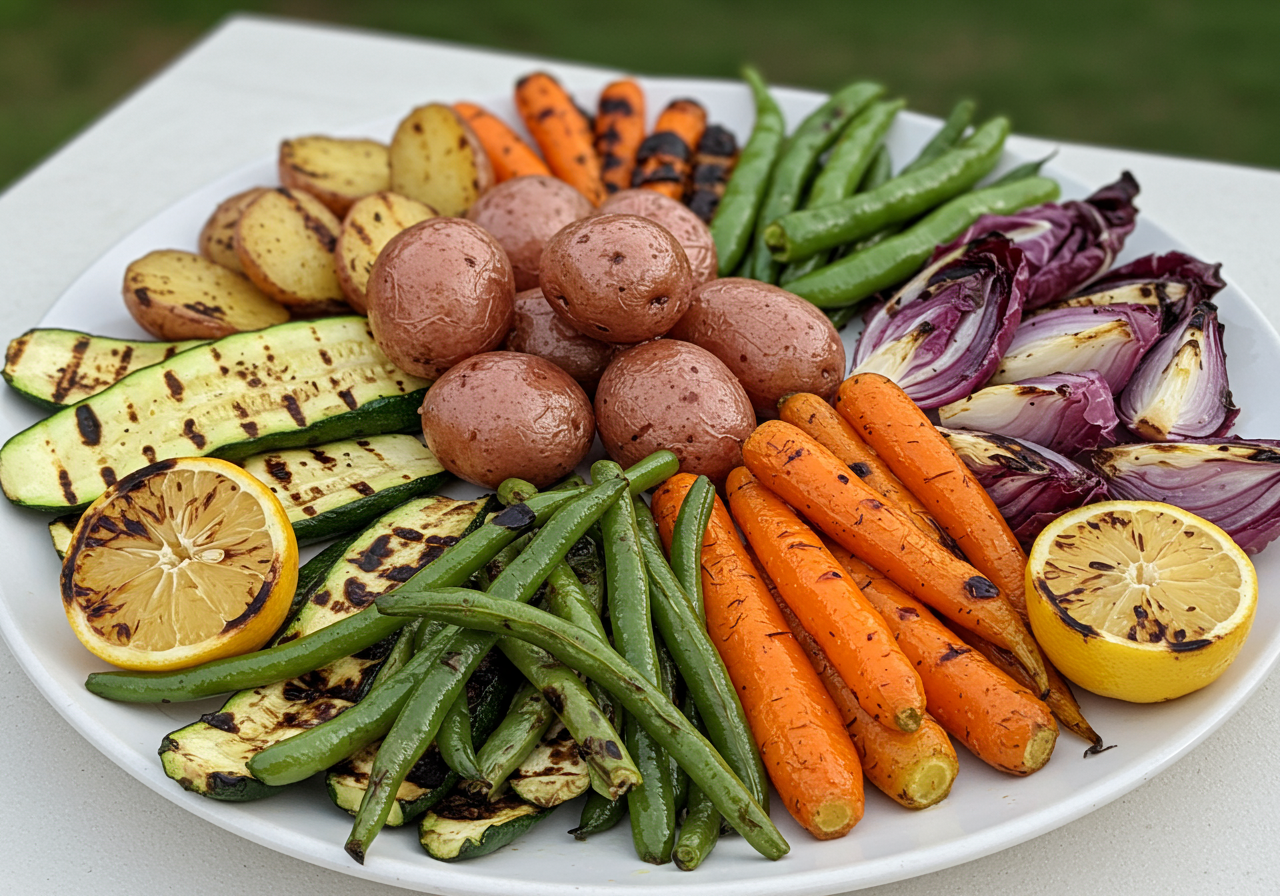 - Arrange the vegetables on a platter. The key to getting those great grill/char marks is to not shift the vegetables too frequently once they’ve been placed on the hot grill.