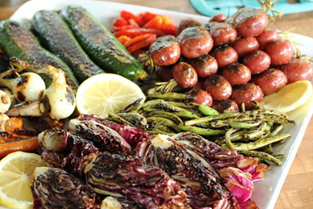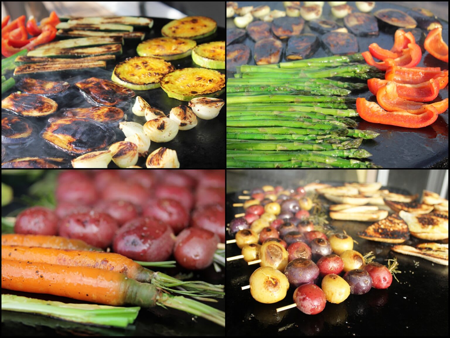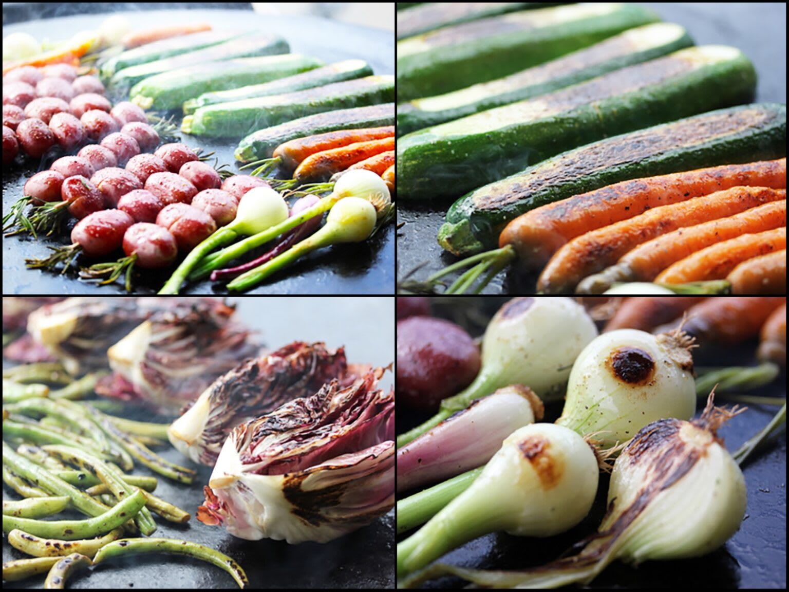 A platter of grilled vegetables is easy, beautiful and delicious. Try to grill what is fresh and in season to create your own unique platter. Serve these as a meal with crusty grilled bread or as a side for any protein. The EVO flat iron grill allows you to grill the entire platter at the same time.
